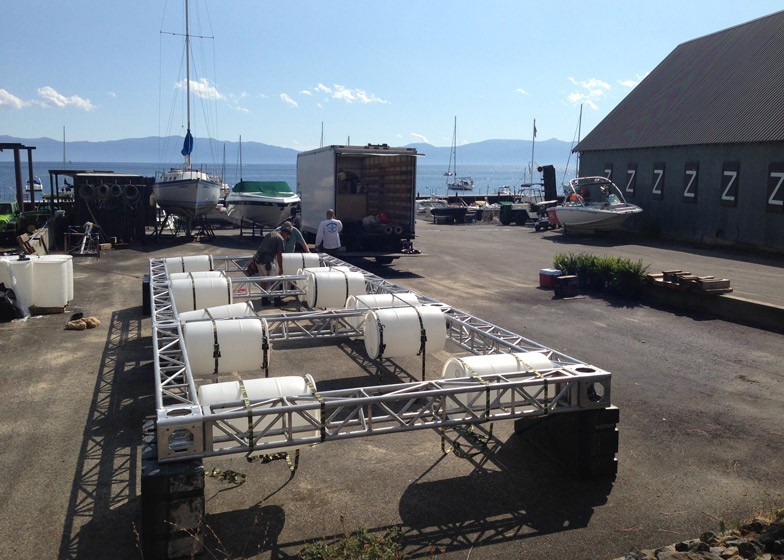 Plavajoča struktura je sestavljena iz kovinskega ogrodja, votlih plastičnih sodov, ki jo držijo na gladini vode, lesene ‘fasade’ ter uteži, ki preprečujejo preveliko zibanje. Obiskovalci, ki so pristostvovali splavitvi kar niso mogli verjeti svojim očem, ko so skate park z barko potegnili v jezero, Bob pa jo je nato osebno preizkusil.