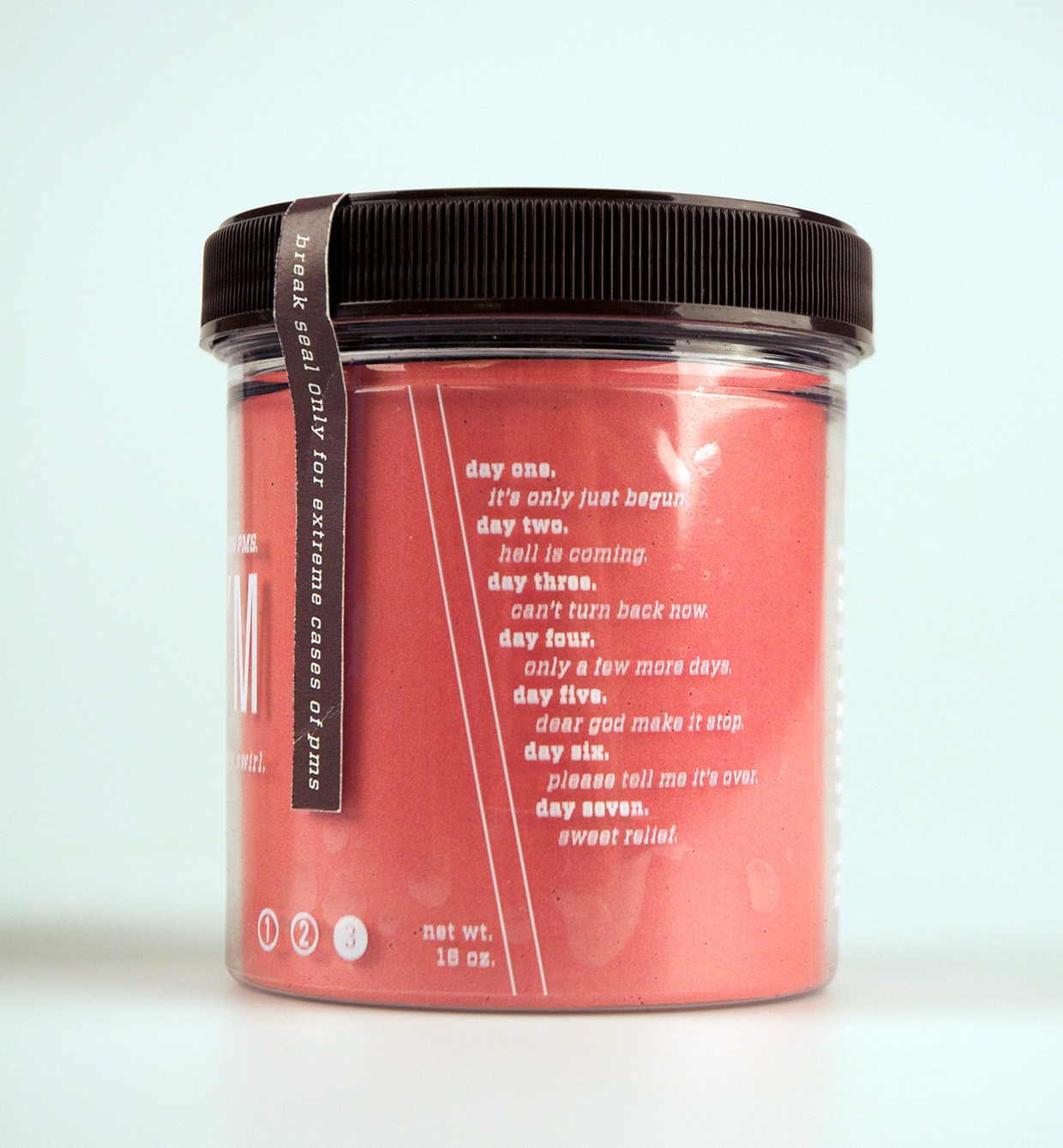 Grafisk designer Parker Jones fra Texas har laget en serie iskremetiketter rettet mot et veldig spesifikt publikum – kvinner som går gjennom PMS, premenstruelt syndrom.