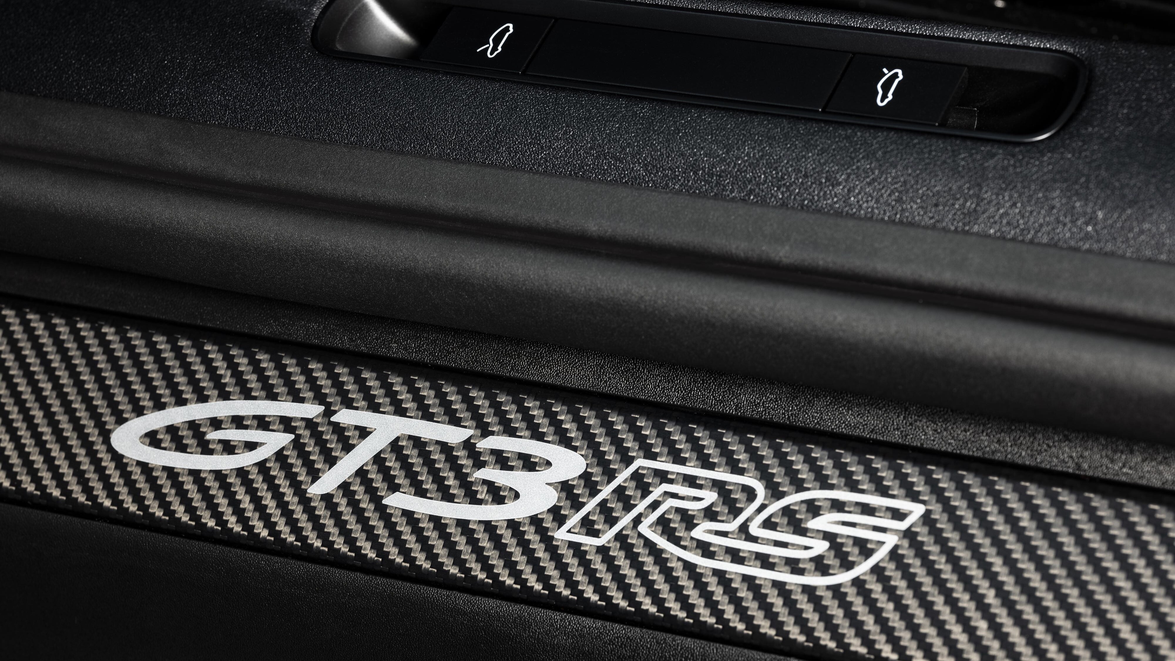 Mens den nye GT-sportsbilen har den typiske røde og hvite retro 911-stylingen på utsiden, har interiøret det velkjente RS-utseendet. Svart skinn, Racetex og karbonfinish karakteriserer en puristisk, sporty atmosfære. Porsche 911 GT3 RS er tilgjengelig med Clubsport-pakken uten ekstra kostnad. Dette inkluderer veltebøyle i stål, håndholdt brannslukningsapparat og sekspunkts sikkerhetsbelter for sjåføren. På den annen side byr den valgfrie Weissach-pakken på mye mer: frontluken, taket, deler av bakskjermen og det øvre skallet på sidespeilene er laget med karbonvevteknologi. Rulleburet, som for første gang er laget av CFRP (karbonfiberforsterket plast), sparer rundt seks kilo sammenlignet med stålversjonen. Et annet høydepunkt i Weissach-pakken er de magnetiske girskifterne, som gjør giringen enda mer dynamisk med et mer presist trykkpunkt og et tydelig merkbart klikk.