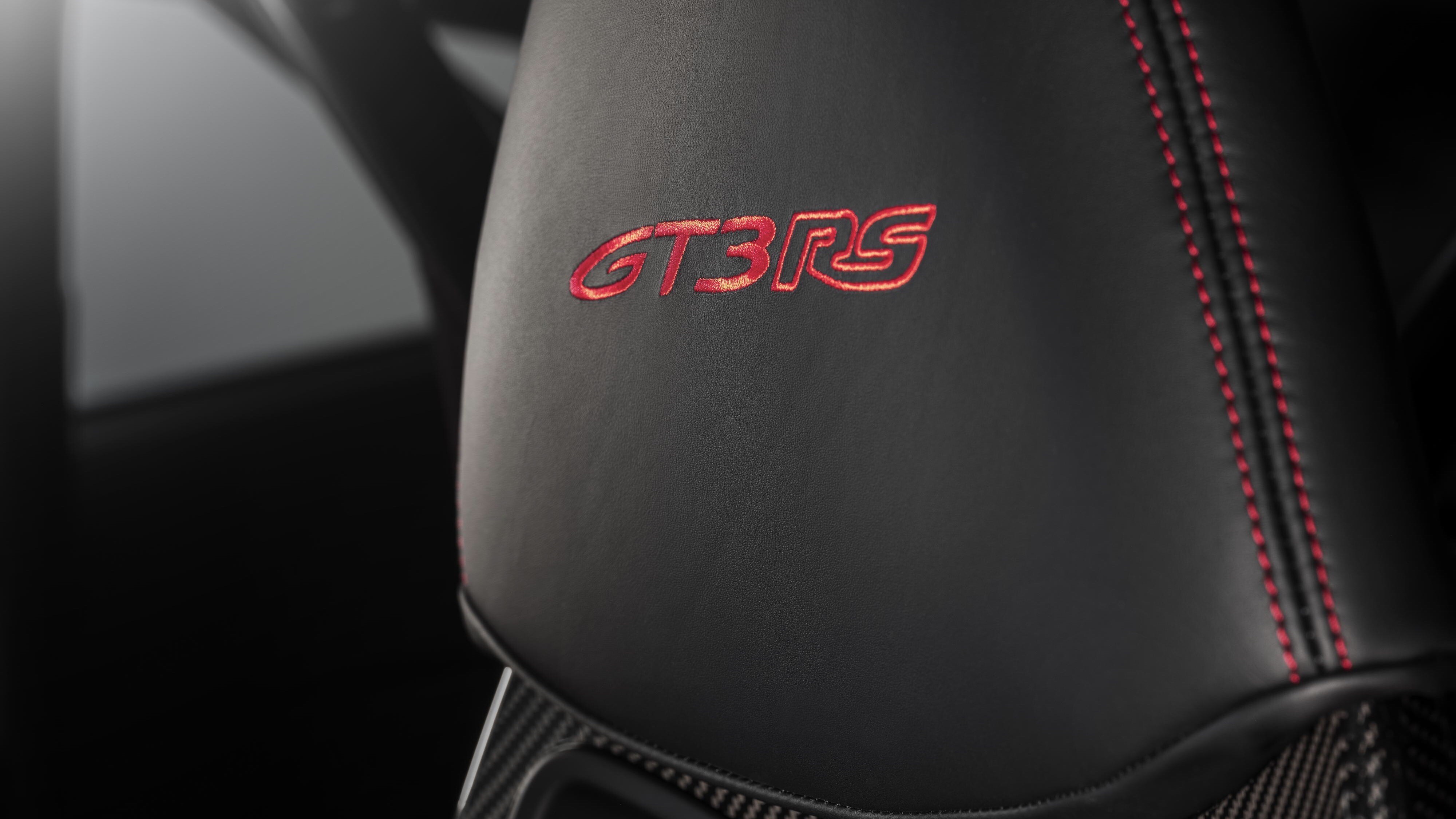 Mens den nye GT-sportsbilen har den typiske røde og hvite retro 911-stylingen på utsiden, har interiøret det velkjente RS-utseendet. Svart skinn, Racetex og karbonfinish karakteriserer en puristisk, sporty atmosfære. Porsche 911 GT3 RS er tilgjengelig med Clubsport-pakken uten ekstra kostnad. Dette inkluderer veltebøyle i stål, håndholdt brannslukningsapparat og sekspunkts sikkerhetsbelter for sjåføren. På den annen side byr den valgfrie Weissach-pakken på mye mer: frontluken, taket, deler av bakskjermen og det øvre skallet på sidespeilene er laget med karbonvevteknologi. Rulleburet, som for første gang er laget av CFRP (karbonfiberforsterket plast), sparer rundt seks kilo sammenlignet med stålversjonen. Et annet høydepunkt i Weissach-pakken er de magnetiske girskifterne, som gjør giringen enda mer dynamisk med et mer presist trykkpunkt og et tydelig merkbart klikk.