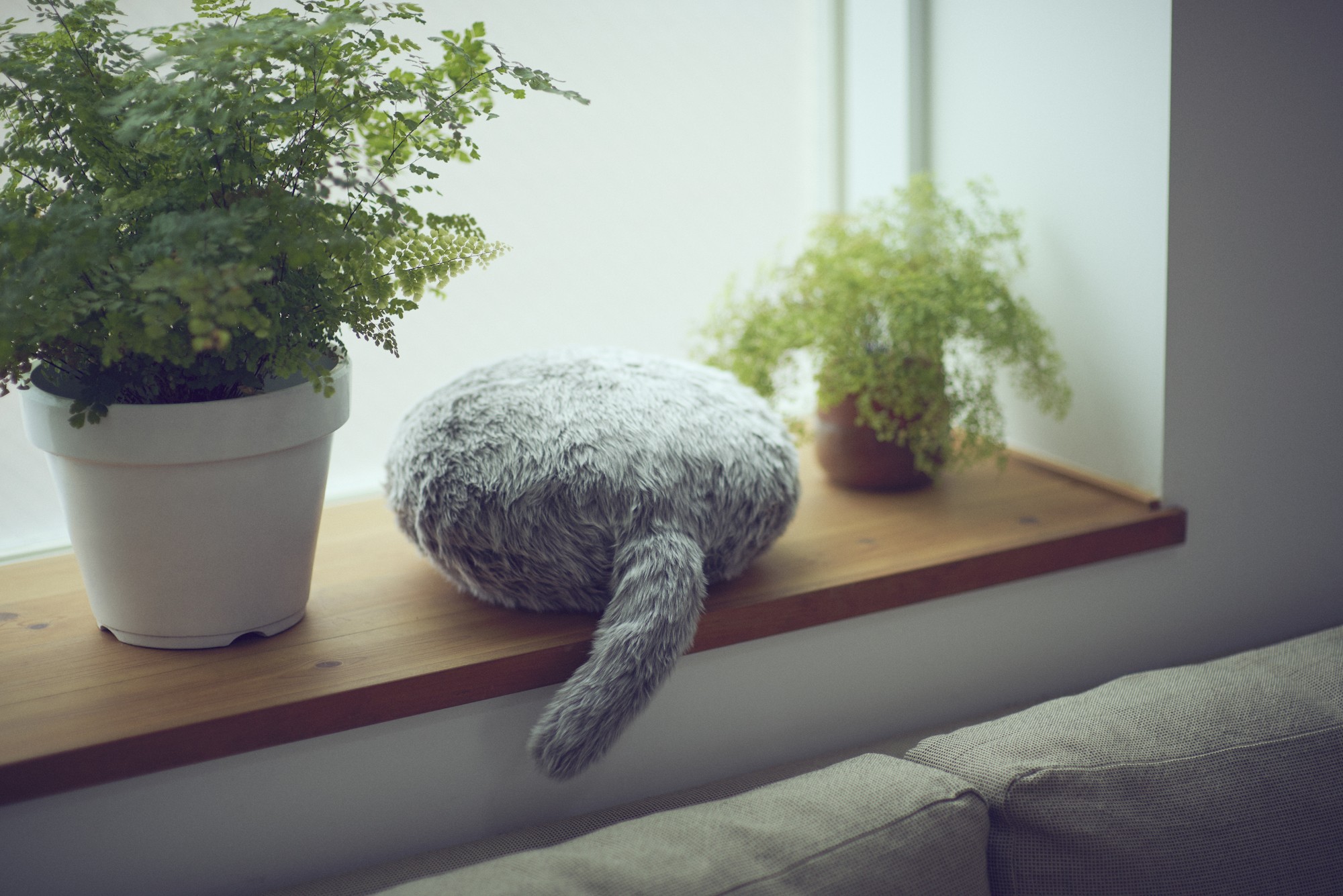 Qoobo je robotek, oblečen v nekakšno umetno dlako, ki z mahanjem repka vzbuja lagoden občutek vsakomur, ki ga pestuje in boža.