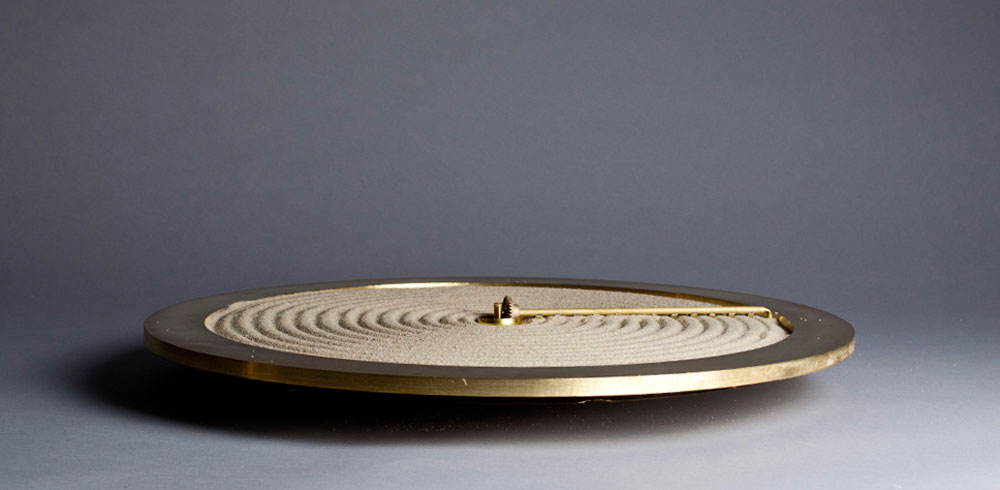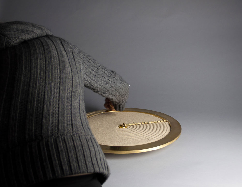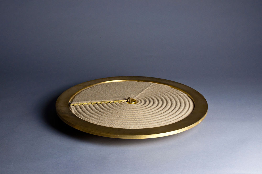 Timeglass Sand, ki jo je izdelal londonski oblikovalski par, dvojčici Bike and Begum Ayaskan, izpisuje čas z delanjem brazd v pesek – kot bi grebli na zenovskem vrtu. Zgleduje se namreč po zenovskem vrtnarjenju, tej starodavni dejavnosti, s katero lahko sproščamo stres, saj prinaša občutek miru in umirjenosti v mislih.