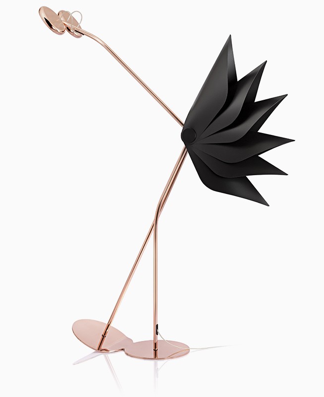 Torej, 3 stropne in 1 stoječa svetilka spominjajo na že znane figure ali predmete. Za navdih si je Ventura valgte plešočo balerino, violino, ptico, ki išče za hrano, og cvetove rož na balkonu. Oblikovalec je za osnovni material uporabil aluminium, ki ga je nato prevlekel med 24 karat gull, bakrom ali ga pobarval v črno oz. belo barvo. Vsaka svetilka je zahtevala še posebno tehniko obdelave, od pihanja stekla do ročnega ukrivljanja.