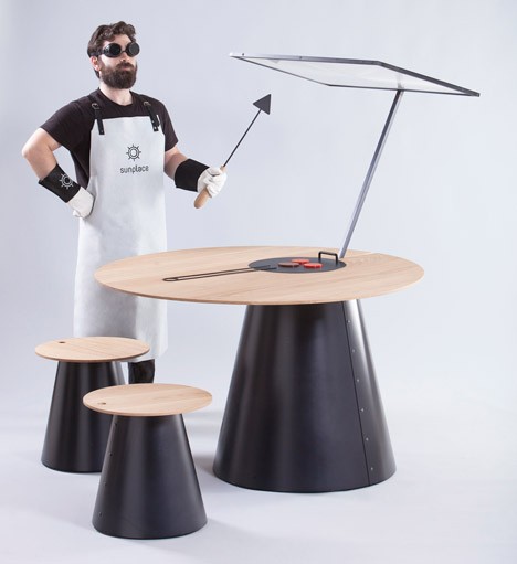 SUNplace ble laget for utstillingen Le Affinità Selettive og i ånden til Milan Expo, hvis røde tråd er mat og søken etter løsninger på globale utfordringer og bærekraftige matløsninger. Den er laget av eiketre, og i stedet for induksjon eller gass eller brann, leveres varmen fra platen av en kompakt fresnel linse, en linse av den franske fysikeren og oppfinneren Augustin-Jean Fresnel, opprinnelig beregnet for bruk i fyrtårn, i stand til veldig smalt fokus sammenlignet med konvensjonelle linser sollys. Bordet er ledsaget av "Mini-Me" stoler, og er også tilgjengelig spesialtilbehør til grillen. Hvorfor spesiell? På grunn av den flate formen kan du varme den under linsen og tilberede den øvre delen av kjøtt eller grønnsaker med dem, mens platen tar seg av "baksiden".