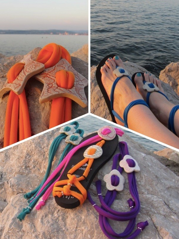 Når vi har valgt den nederste delen, kan vi begynne å velge stilen på sommersandal avhengig av humøret vårt, resten av garderoben vår, personlighetene våre, formålet med sandalene... Nå vår kombinasjon av farger og stiler av flip-flops eller sandaler er bare så vidt begynt! Et bredt utvalg av fargede bånd, ringer på dem og sokker lar oss fargekoordinere klærne våre med Solsmil på tusen og én måter.