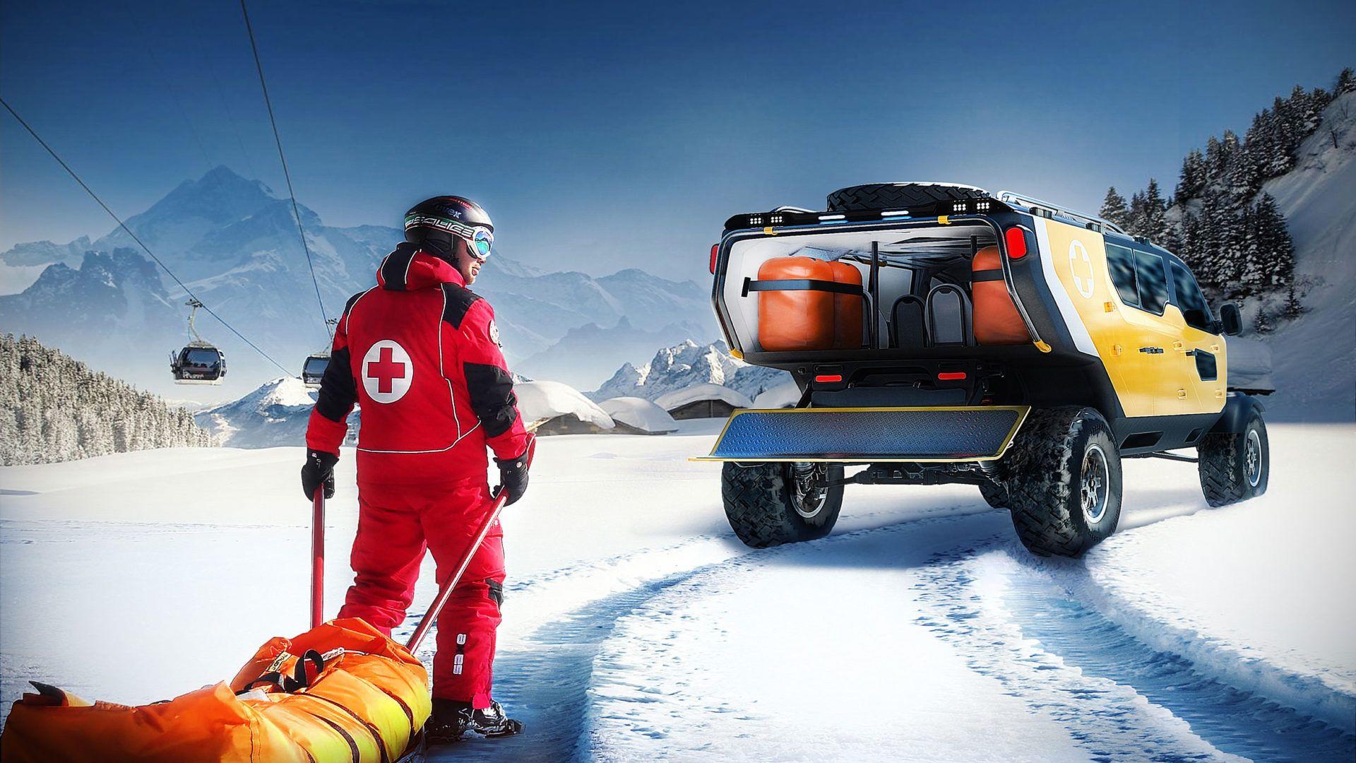 Passasjerkabinen har stor frontrute, som gir maksimal oversikt over omgivelsene og terrengets tilstand. Det er ikke mange instrumenter foran føreren, bare noen få grunnleggende, slik at føreren kan konsentrere seg fullt og helt om å kjøre i utfordrende terreng. Navigasjonsskjerm til offeret foran passasjeren, som hjelper sjåføren med å navigere. De siste seks setene er sammenleggbar, og dermed skape nok plass til båren. Om Surgo virkelig vil bli levende eller ikke gjenstår å se, men vi er sikre på at det ville skjedd. glad for å bruke alle fjellredningsmenn.