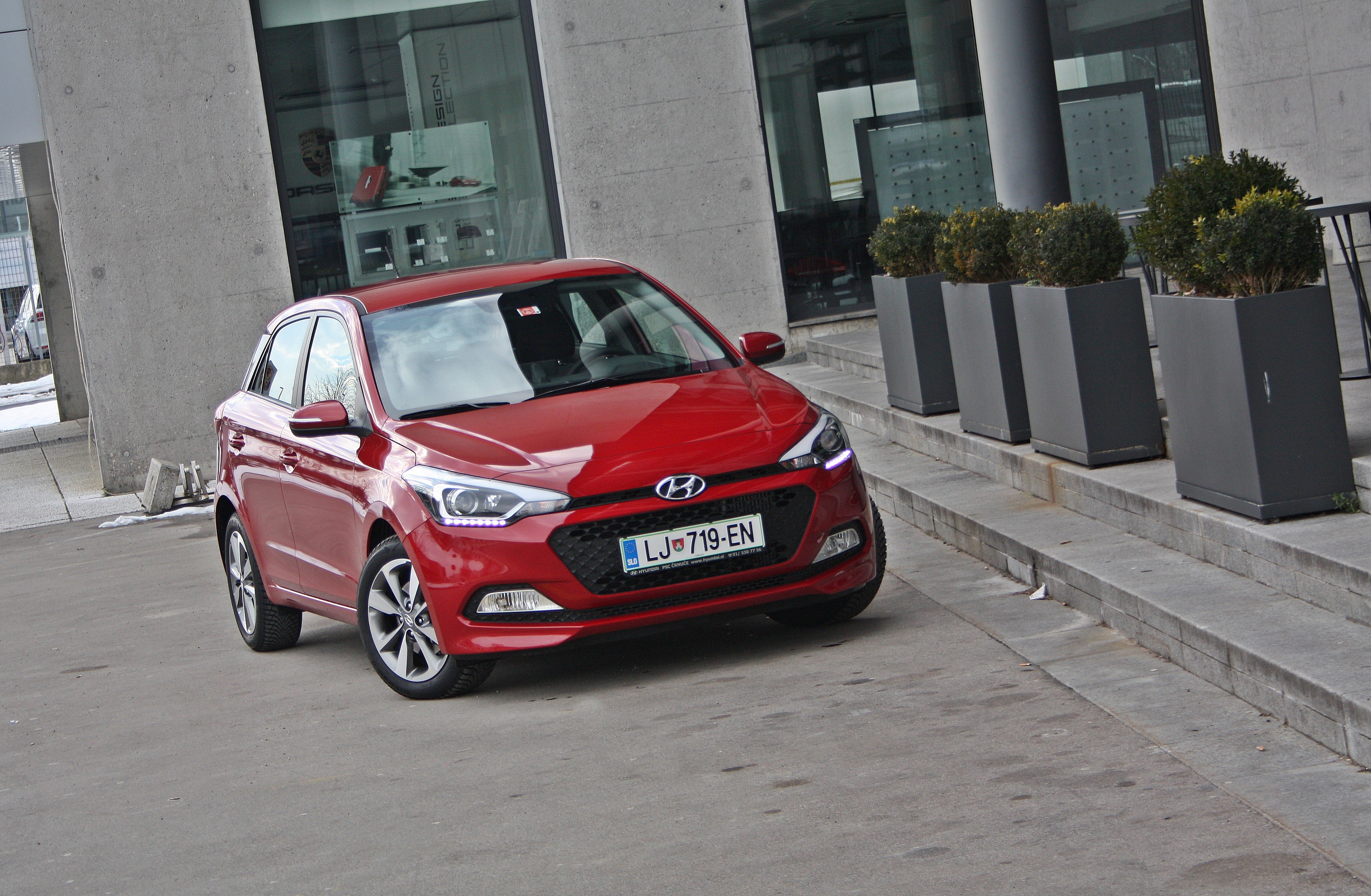 Pa začnimo na začetku. Oblikovno boste s kateregakoli kota zaman iskali podobnosti s predhodnim modelom. Teh preprosto ni. Zunanja oblika je zelo moderna in ukrojena po najnovejših evropskih smernicah. Marsikdo je uporabil tudi besedo “kopirali” so malce tega in tega…ampak mi pravimo, da je i20 dovolj svež in samosvoj, da mu plagiatorstva ne moremo očitati. Če kdo vidi kakšno podobnost z naprimer giulietto pa novi hyundai i20 prav tako ne moremo šteti v bran. Posebnost predstavlja maska motorja z izrazitimi horizontalnimi linijami in razpotegnjenimi žarometi. Lepa pika na i so všečno oblikovane LED dnevne luči, tako da na ksenon preprosto pozabiš.