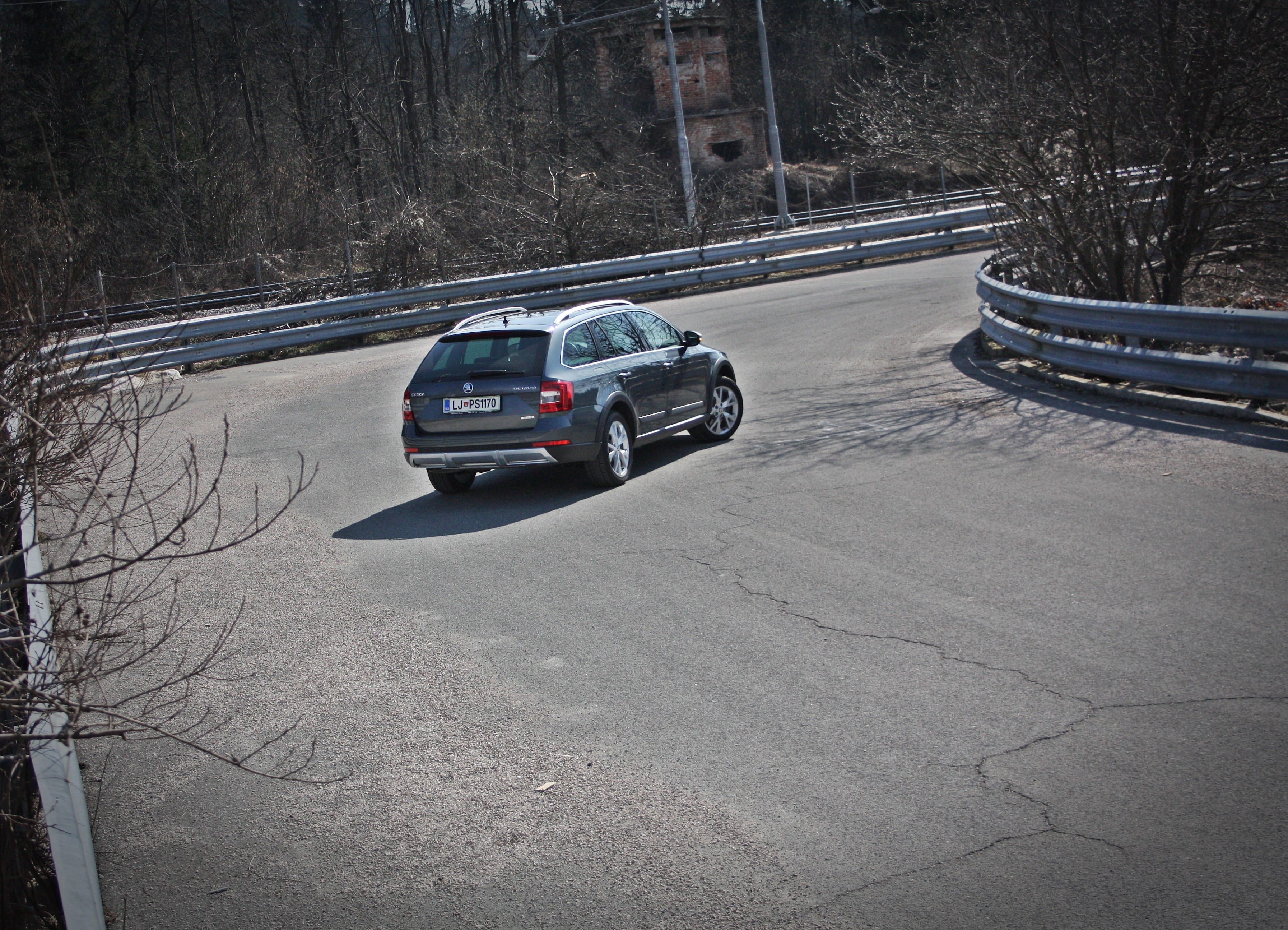 Poglavitno razliko, kot že omenjeno, pomeni firehjulsdrift, s pomočjo katerega se bodo lastniki octavie scout samozavestno spopadli tudi z večjimi terenskimi izzivi. Razlog za tolikšno samozavest leži v zmogljivi haldex sklopki pete generacije, ki na vsako kolo v delčku sekunde odmeri optimalno količino navora, v praksi pa voznik zgolj dozira plin in vrti volan. Za vse ostalo pa poskrbi elektronika. Pri spuščanju po klancu navzdol, pa ni potrebno niti to, saj z vklopom programa “off road”, voznik potrebuje zgolj usmerjati vozilo, elektronika pa prevzame vse ostale vajeti. Poraba se glede na vse (4WD, avtomatiko, zimsko obutev) ni zdela pretirana. Prej nasprotno. Tudi z dinamično, a ne potratno vožnjo se boste zlahka zadrž(ev)ali pod mejo sedmih litrov, varčevanje pa porabo približa šestim litrom.