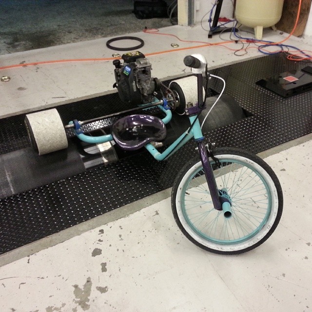 Selvfølgelig ble det laget en helt spesialtilpasset og minimalistisk ramme, som bare en liten motor hviler på. Triks – som de kalte det, kan den nå hastigheter på opptil 45 km/t, og det hele drives av en motor som har 6,5 hester.