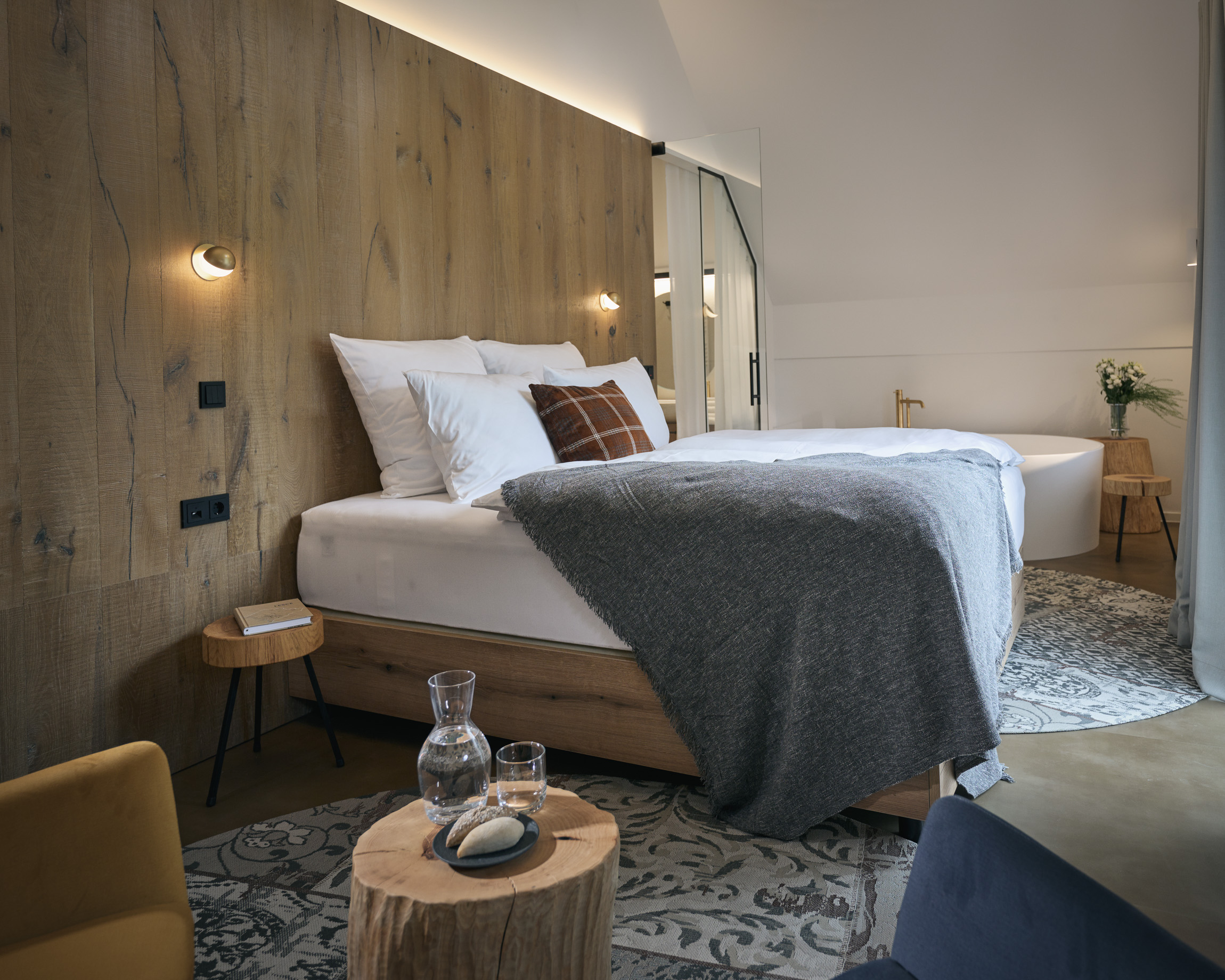 Moderne innredede rom reflekterer komfort og varme. Det er stor vekt på tre, noe som fremkaller en hjemmekoselig følelse og vitner om bygningens majestet, som har gjenvunnet det ryktet det fortjener hos de nye eierne. Blant rommene kan du også finne to duplekser, med senger i galleriet og to deluxe-rom, som kan skilte med et stort badekar hvorfra du kan beundre den mektige Špik.