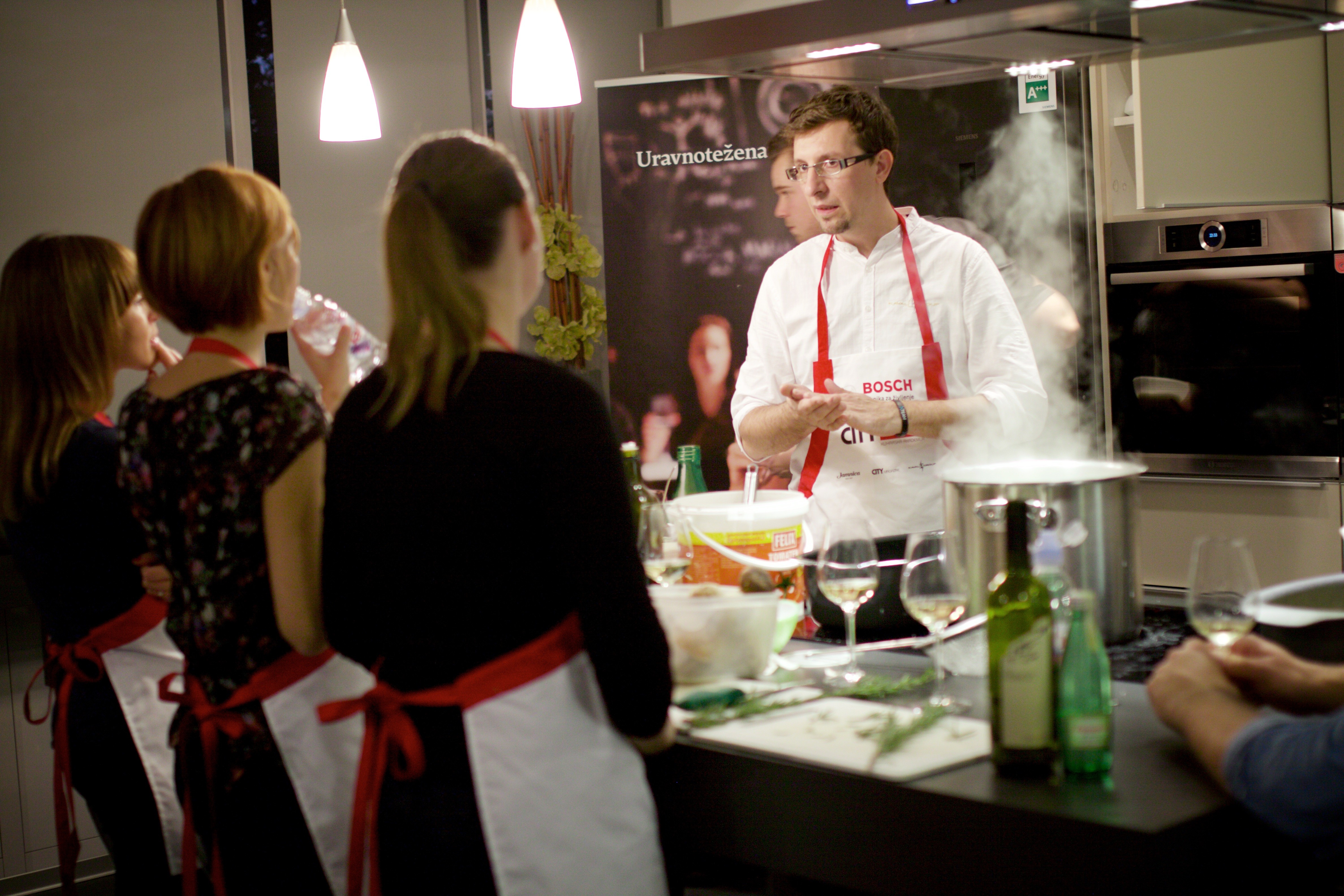 Hvis du lurte på hva som er i Ljubljana 21. oktober 2015 det luktet så godt at det er "skyld" for de berusende duftene Kokkeakademi med italiensk preg – BYKOKK, som nok en gang ble holdt i det renoverte Bosch og Siemens showroom. Vi, deltakerne, så på matlagingsveiviserne igjen, Dragan Marjanović, kjøkkensjefen på vertshuset og pizzeriaen Kaval og til konditoren fra konditoriet Lolita, Til Greg Rodet, men vi bidro selvfølgelig også med noen av våre kokkekunnskaper til det endelige resultatet.