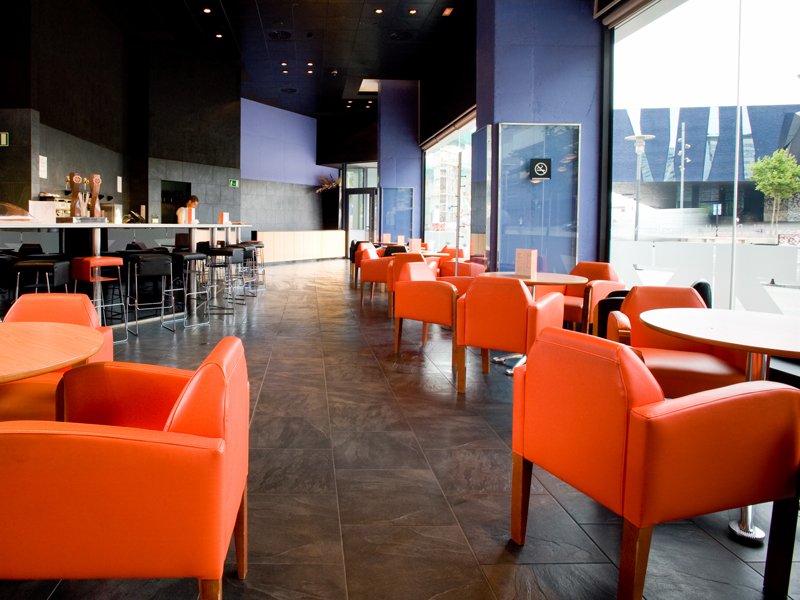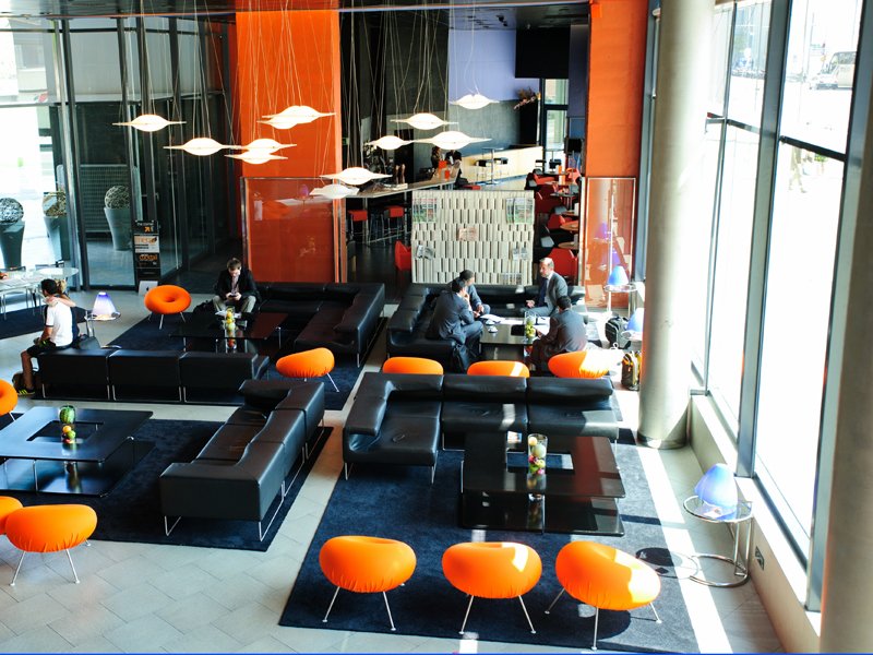 Tudi prostor za druženje je povsem v Desigualovem slogu, barva koktajla se tu povsem ujame z barvami, ki obdajajo prostor. Če bi morali izpostaviti kaj izstopajočega, lahko zapišemo le, da iz tega prostora vpijeta pozitiva in energija. V tem prostoru je prav vse oblikovno dovršeno do zadnje malenkosti, od vzorcev na preprogi, pletenih svetil, puhastih blazin, do ročno izdelanih kavnih mizic, ki so delo lokalnih obrtnikov.