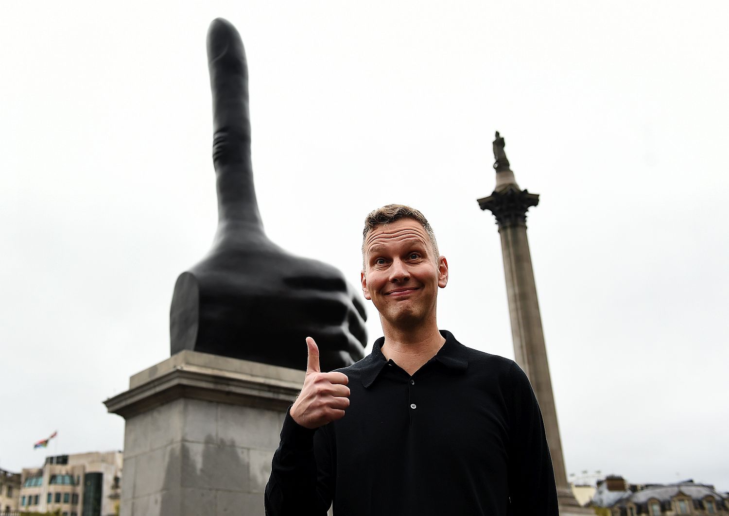 Četrti steber na londonskem Trafalgarjevem trgu ima novega začasnega gosta. To je velikanski, sedemmetrski dvignjeni palec, skulptura vsestranskega umetnika Davida Shrigleyja, ki je sicer najbolj prepoznaven po risbah v stripovskem slogu ter zajedljivem in črnem humorju. Bronasti kip, ki je bil izbran na natečaju pred dvema letoma in začasno dela družbo vojaškim spomenikom, nosi naziv Really Good (Zares dobro).