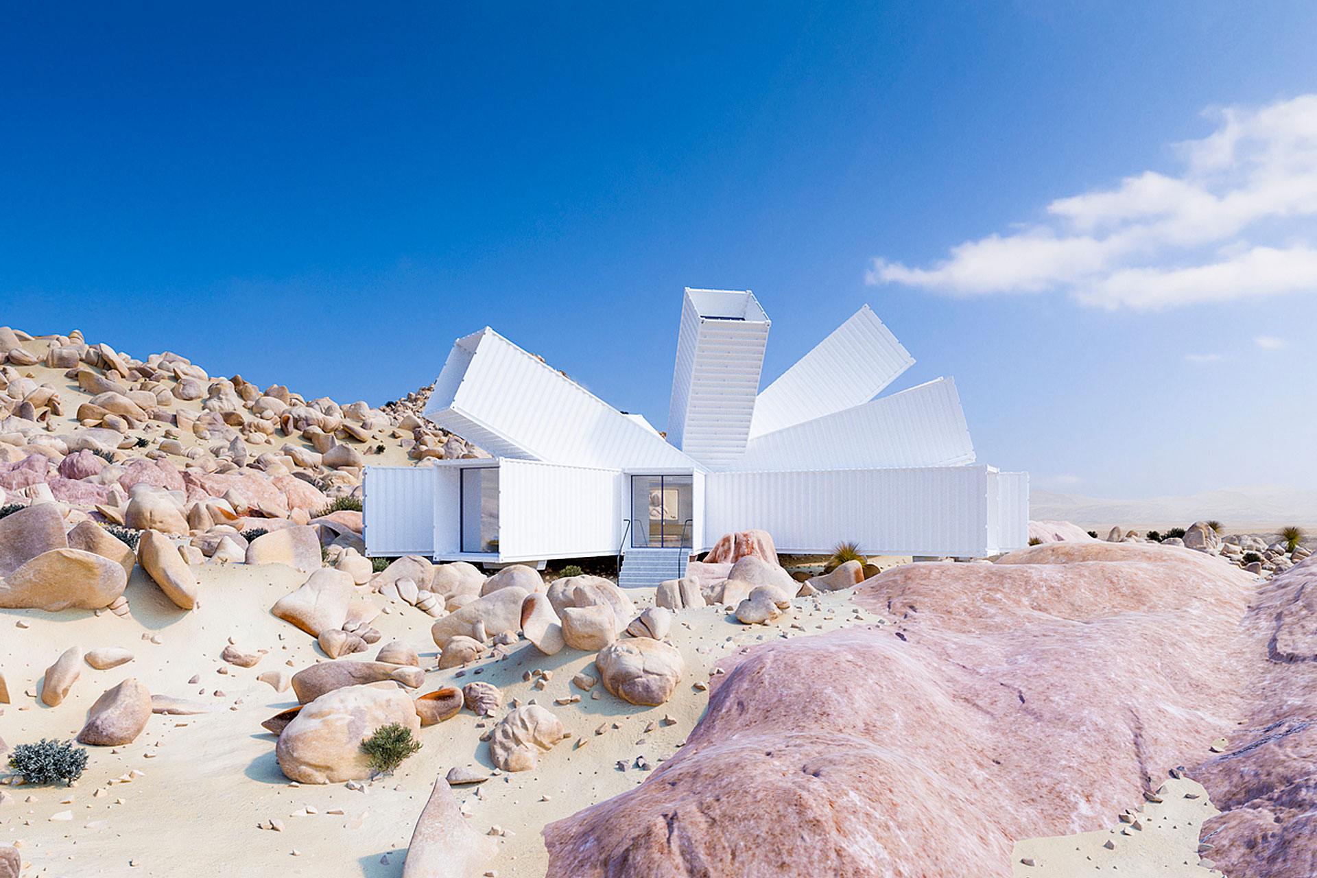 Joshua Tree Residence er et sett lastecontainere, plassert i form av en blomst, designet av et arkitektkontor Whitaker Studio. Det er faktisk deres aldri fullførte kontorprosjekt som de nå har gjenoppstått.
