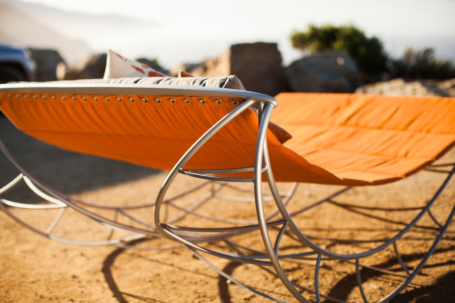 To er bedre, sier de. Brødrene Jules og Jason Henry, drivkraften bak utemøbelmerket Sveglio, overførte denne ideen til Volo hagehuske. Navnet på den kongelige husken kommer fra italiensk og betyr 'å fly', og den lar deg svinge forsiktig, ikke bare som et par, men også med stil. Du kan velge mellom ulike farger på lerret og halvmåneben i metall.