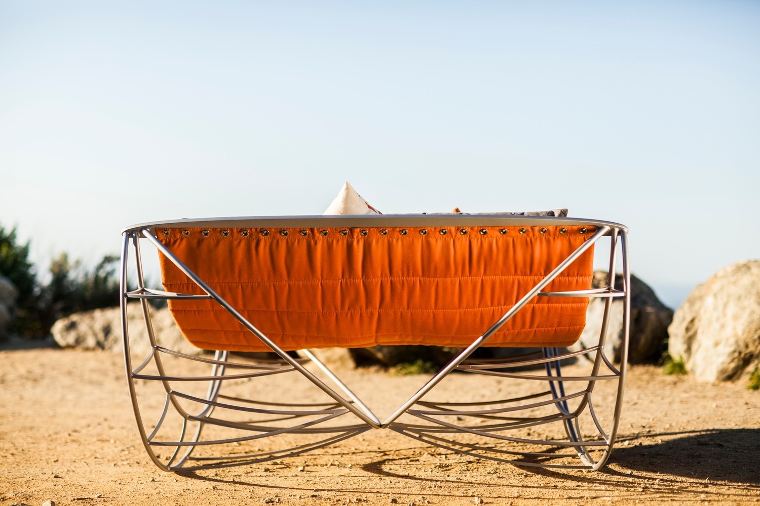 Če ste zaljubljeni, potem vas bo vrtni gugalnik Volo prav gotovo očaral. Namenjen je namreč poležavanju in zibanju v dvoje. Poleg izbire barve počivalne površine, ki spominja na visečo mrežo, lahko izbirate tudi med barvami konstrukcije narejene s pomočjo 3D-skriver. Na voljo so starinsko bronasta, nebeško bela, srebrna kot zvezdni prah ali odtenek po želji. Čeprav je gugalnik v osnovi namenjen zunanji rabi, pa se ne brani notranjih prostorov.