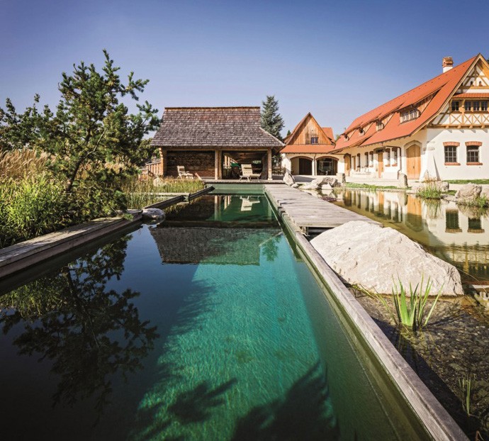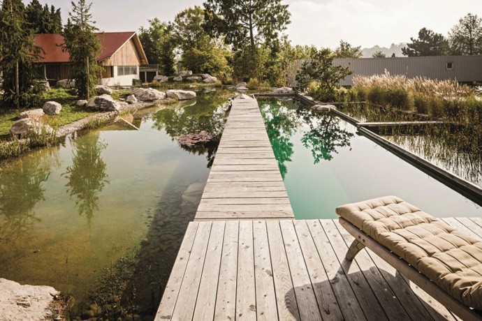 Bazen na pričujočih slikah je postavljen v Nemčji in ga je oblikoval oblikovalski studio Balena. Osnovna ideja je narediti bazen, ki v osnovi izpade bolj ribnik kot bazen ter se tako integrira s samim okoljem. Tehnologija bazenov TeichMeister predstavlja kombinacijo flore in faune takšnega naravnega bazena, predvsem z mislijo na idealno kombinacijo vzdrževalnih stroškov in trajnosti. To pa še ne pomeni, da takšnega bazena ni potrebno vzdrževati. Le to je manj kemično agresivno.
