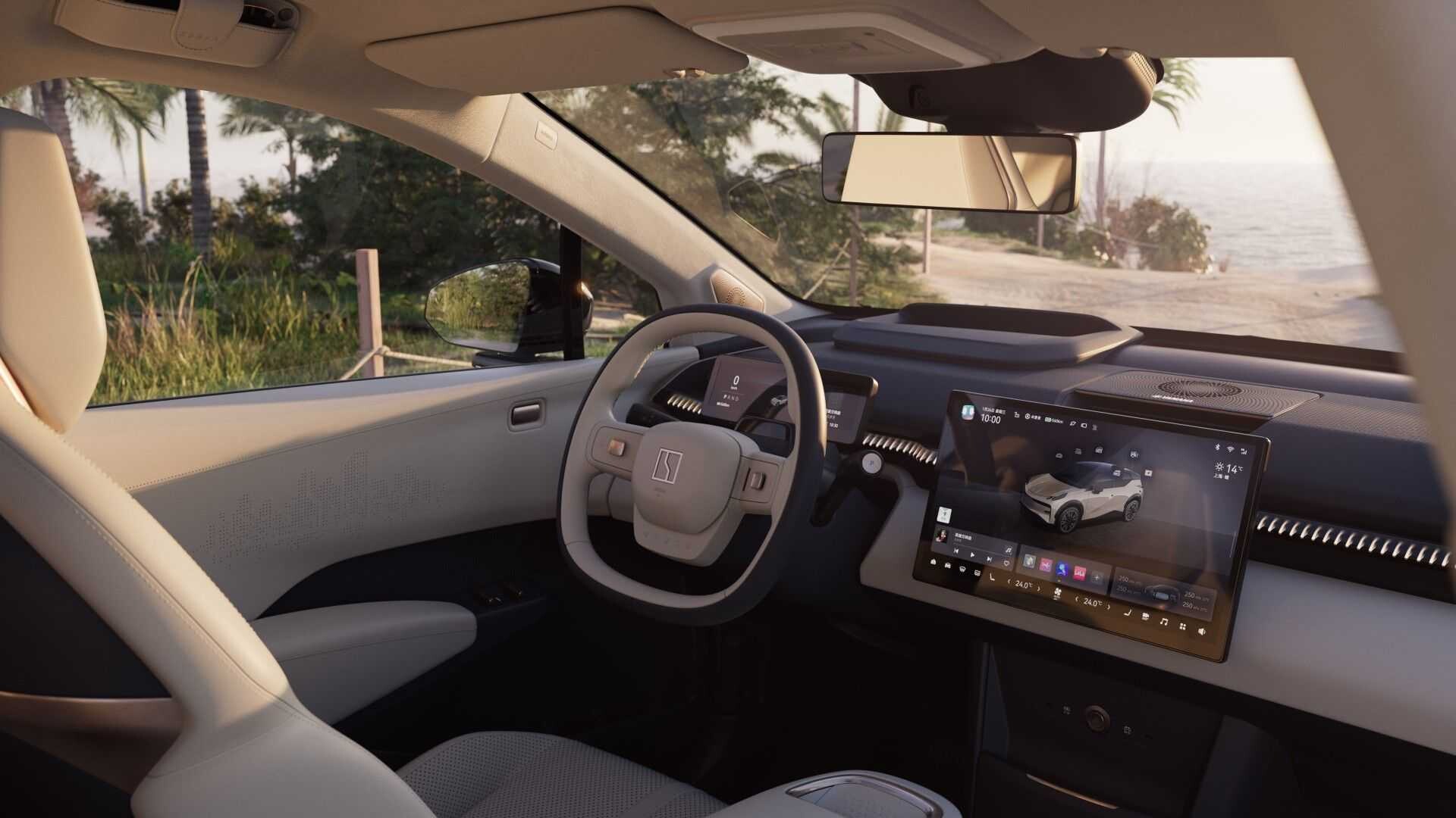 Zeekr X skiller seg imidlertid ikke bare ut på grunn av sine praktiske funksjoner. Interiøret er spekket med høyteknologiske funksjoner, inkludert et 1,2 kvadratmeter panoramaglasstak med dobbel rute, en enorm 14,6-tommers flytende head-up-skjerm, en ladepute for trådløs telefon og omgivelsesbelysning.
