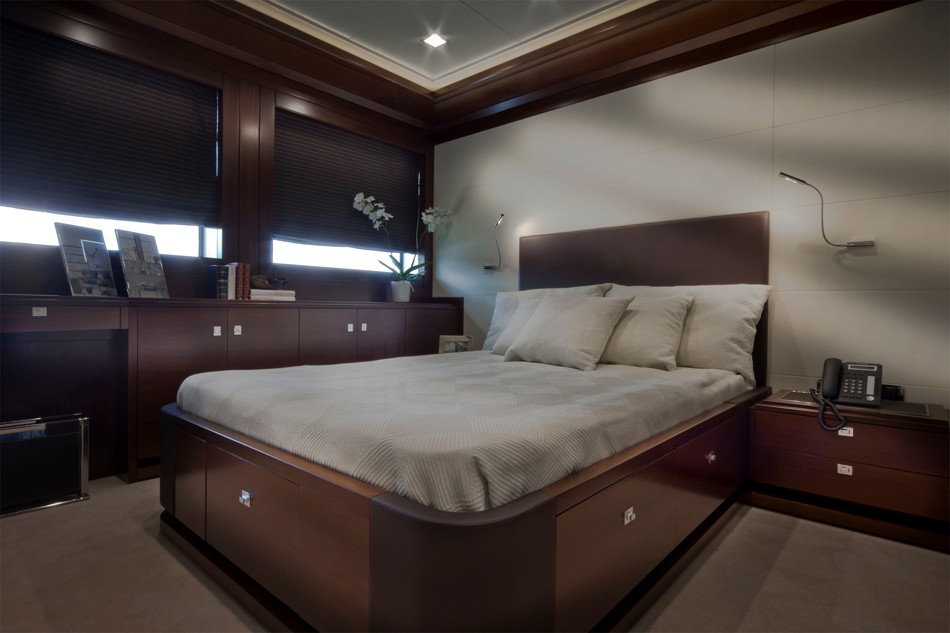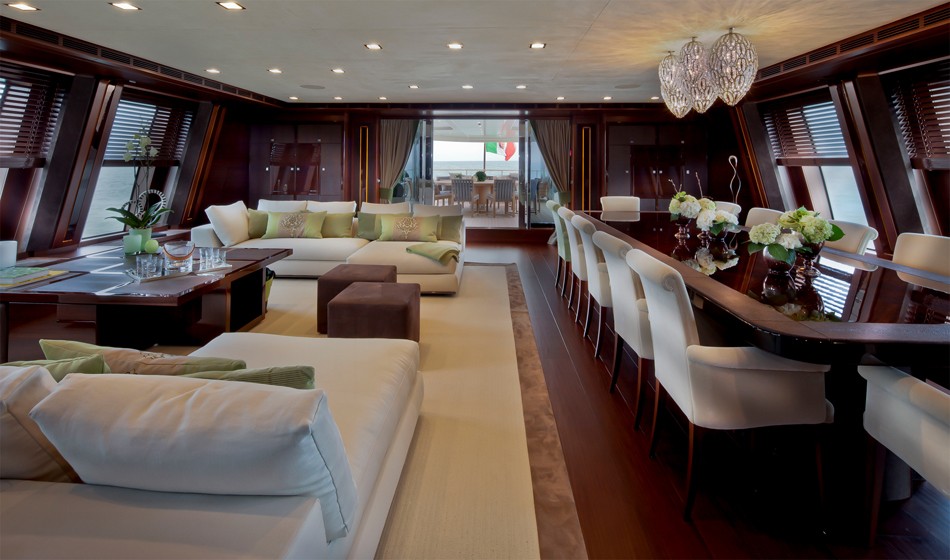 Ja, cena je morda malce zasoljena, a ob toliko soli, ki jo obdaja, je bilo to za pričakovati. J’ade je kot kenguru, saj v svojem trebuhu pestuje 8-metrskega ”otročička”, luksuzni gliser Riva Iseo, ki pa ne počiva na suhem, ampak znotraj nje plava kot v mirnem pristanu. Garaža se lahko v le treh minutah spremeni v bazen s podvodnimi lučmi, ki ga obdaja bar, medtem ko se zadek lahko spremeni v teraso za sončenje in koristi taisti šank. Mimogrede. Ob desetih gostih lahko ladja gosti še 13 članov posadke.