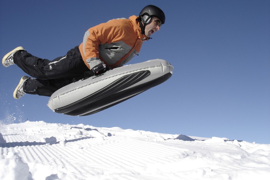 Airboard opblaasbaar kussen het kan tam zijn en voor degenen die een onschuldige afdaling willen van de met sneeuw bedekte heuvel achter het huis, maar het kan ook een wild beest zijn dat adrenaline-hongerige winterliefhebbers tevreden stelt, aangezien het dat toelaat halsbrekende afdalingen, sprongen en andere acrobatiek. Je kunt heel snel vaardig worden in airboarden. 30 minuten zijn voldoende om de wetten van het manoeuvreren onder de knie te krijgen, die bestaan uit een groef aan de onderkant van het airboard, waar ze naast liggen twee schuifbalken, die worden gebruikt voor draaien, remmen en snel stoppen (dit is verder vergelijkbaar met skiën, aangezien we loodrecht op de baan staan), en op het "dek" vinden we twee handvatten om vast te houden.
