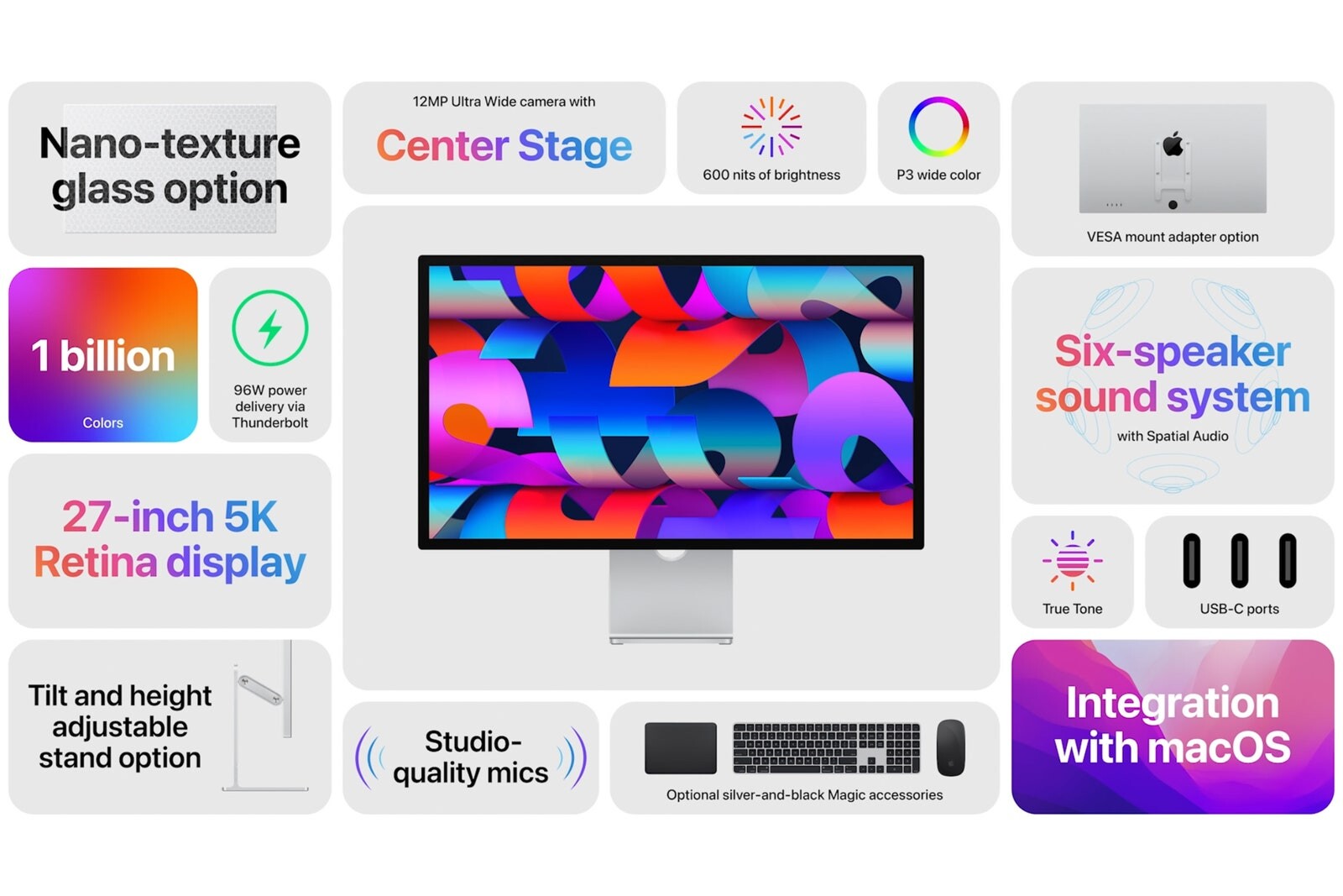 Een absoluut geweldig beeldscherm voor je Mac. Verfijnd: met de juiste accessoires pas je het scherm ook in hoogte aan of bevestig je het aan de muur. Studio Display is verkrijgbaar vanaf 1.749 euro.