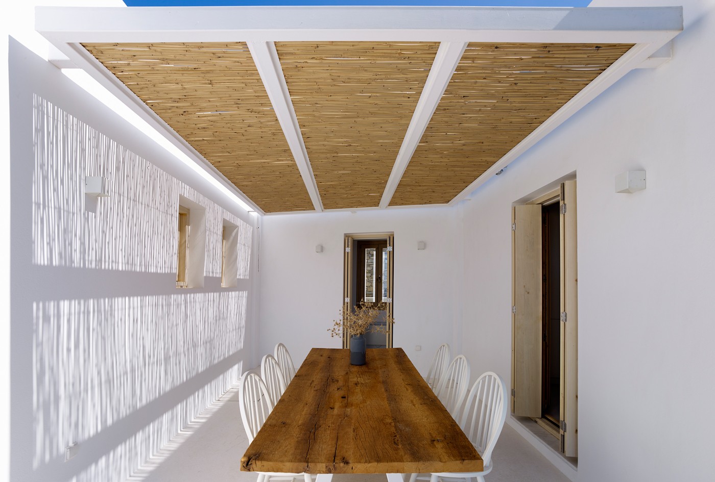 In kaj dela ta projekt edinstven? Kot že omenjeno, gre za reinterpretacijo kikladskega arhitekturanega jezika, za dialog med projektom in njegovim naravnim okoljem ter kot tudi za oblikovanje gostljubnega, a še vedno dorskega poslopja.