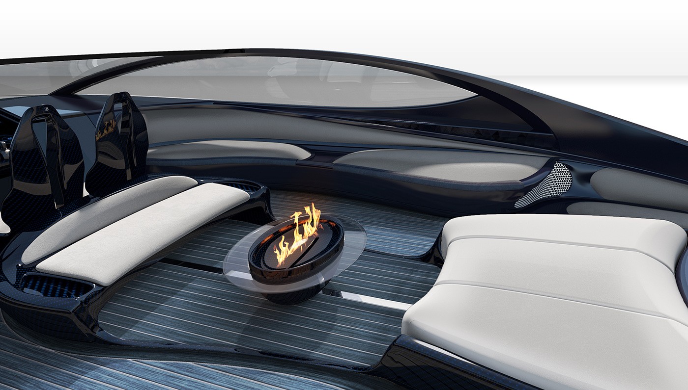 Een jacht Palmer Johnson x Bugatti Niniette 66, wat van alles genoemd kan worden Bugatti Cheiron op het water, beschikt het over een open haard en een jacuzzi en is het de eerste van drie luxe jachten uit de Niniette-serie (deze zullen in lengte variëren van 15 tot 25 meter), de bijnaam van Lidia Bugatti, de dochter van oprichter Ettore. Het is bedekt met een opvallend blauw omhulsel gemaakt van titanium en koolstofvezel. Hij bereikt snelheden tot 80 km/u (44 knopen), wat niet overdreven is, maar het zoekt je elders. In luxe accessoires zoals champagnebar, genoemd jacuzzi en open haard, lederen bekleding, gekleurde houten accessoires...