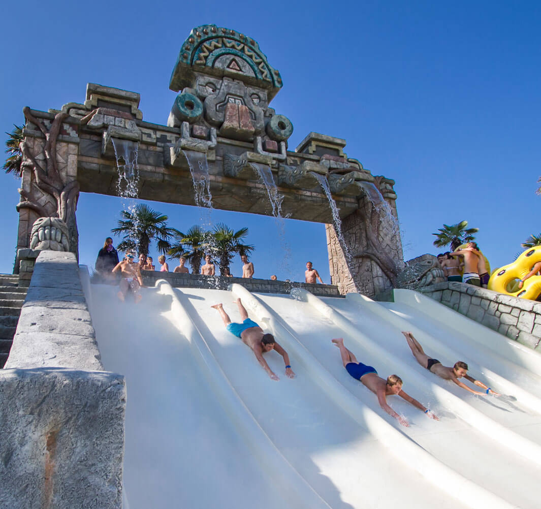 Het attractiepark heeft tien themagebieden met 27 attracties, waaronder het hoogste platform voor glijbanen en het hoogste "bungeejumpen" van Europa, want het is zo hoog als 60 meter. Diverse glijbanen, piratenschepen, kunstmatige watervallen ze zijn slechts een deel van de belevenissen die u te wachten staan in het enorme waterpretpark met een grote verscheidenheid aan activiteiten en themawerelden. Naast vele zwembaden en thrill rides heeft het ook een circusschool, een limboschool en een klimmuur.