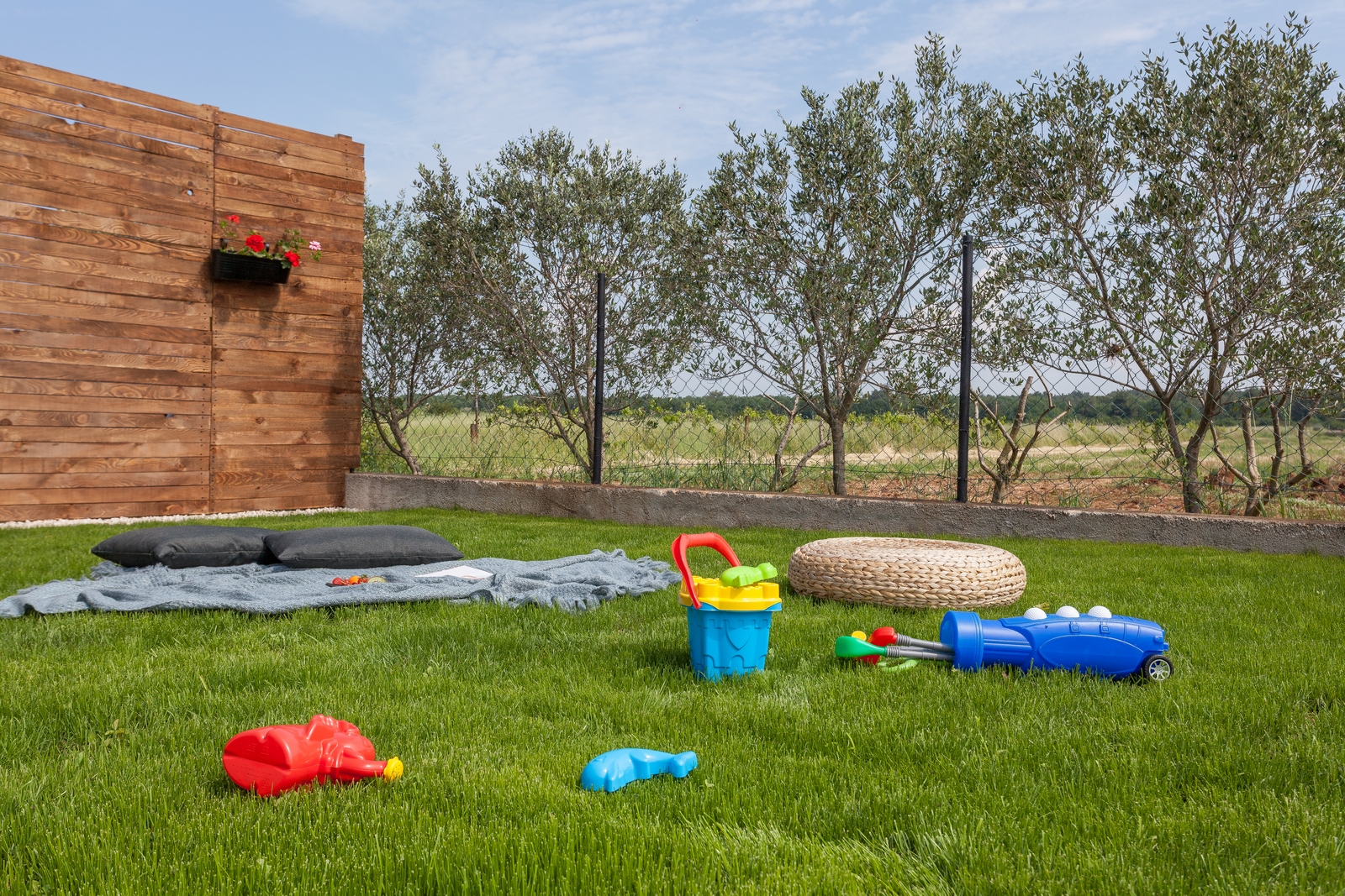 In het huisje kunnen acht personen verblijven. Er zijn vier slaapkamers en vier badkamers. Op de begane grond is er een grote keuken met interne steen en een woonkamer, van waaruit toegang is tot het buitenterras met een zwembad. Er is ook een ligweide naast het zwembad en ook kinderen zullen blij zijn met de villa, want er is ook een glijbaan en een trampoline in de tuin.