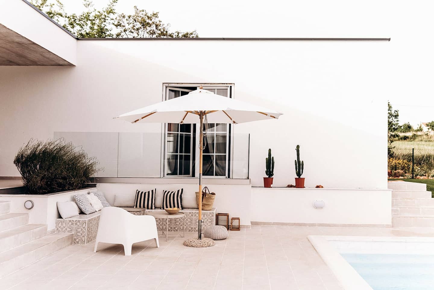 Het interieur is tot in de puntjes doordacht, van rotan lampen in de eetkamer tot bijzondere accessoires in de slaapkamer. Lichte tinten overheersen, die opgaan in moderne meubels, wat de ruimtelijkheid en natuurlijke lichtinval van het huis nog eens benadrukt. Kookliefhebbers zullen blij zijn met de goed uitgeruste keuken, terwijl levensgenieters zullen blij zijn met het buitenterras met zwembad en barbecue.