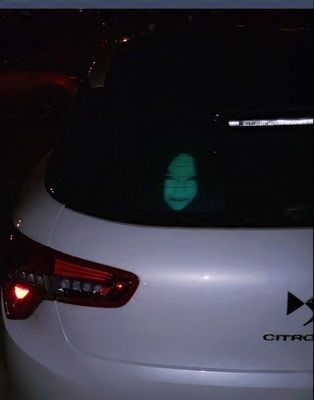 Je hebt genoeg geschorste bestuurders, die aan je blijven plakken achterste autoa, ze 'vermengen' nerveus of zelfs ze rijden met grootlicht? Sla hiermee angst in hun botten griezelige stickers, waar je op plakt achterruit en die alleen zichtbaar worden als de auto wordt verlicht door het grootlicht.