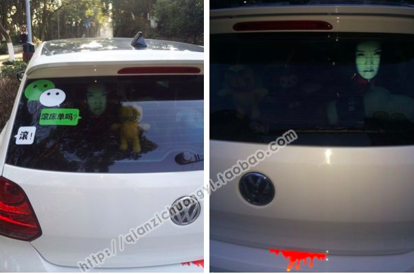 Autostickers, die worden verkocht in een Chinese online winkel Tmall, zijn een uitstekend wapen tegen zulke chauffeurs. Op klaarlichte dag zijn ze vrijwel onzichtbaar, en ze laten hun ware gezicht alleen zien in het donker, wanneer de lichten op hen schijnen. Ze maken de bestuurder achter je bang, net als de enge scènes in films, wanneer we kippenvel en bevroren bloed krijgen. Op de achterruit kunt u een gezicht plakken een vampier, een zombie, een meisje uit de film Circle, een geestKortom, karakters die ons bang maken in Hollywood-horrorfilms. Zou jij het licht uitdoen als er zo’n angstaanjagend beeld voor je zou verschijnen? Het zou toegevoegd moeten worden, ja Chinese politie brengt boetes in rekening aan voertuigeigenaren die dergelijke stickers gebruiken, wat niet verrassend is, aangezien ze veel mensen zo bang kunnen maken dat ze een ongeluk veroorzaken. Toch gaan ze als warme broodjes over de toonbank. De prijs voor hen varieert tussen 3 en 17 euro.