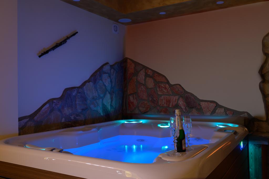 Het is ook op het terrein privé wellness, waar u een aangename sauna vindt, een ontspanningshoek om tot rust te komen, een magische sfeer met kaarsen en een open haard, mousserende wijn, een hoek met een bed om uit te rusten, een theehoek, Jacuzzi met uitzicht, die adembenemend is en zorgt voor volledige ontkoppeling, ontspannende muziek, een zachte badjas, slippers en handdoeken en een verrassing!