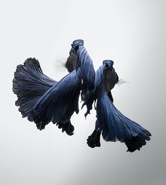 Visarute Angkatavanich is een 48-jarige Thaise fotograaf, welke Siamese vechtvis op een heel andere manier weergegeven. Met behulp van kristalaquaria, krachtige lenzen en spectaculaire verlichting maakt fantastische foto's van deze dierenHet effect is werkelijk magnifiek, want verandert vissen in magische wezens die door de lucht lijken te bewegen.