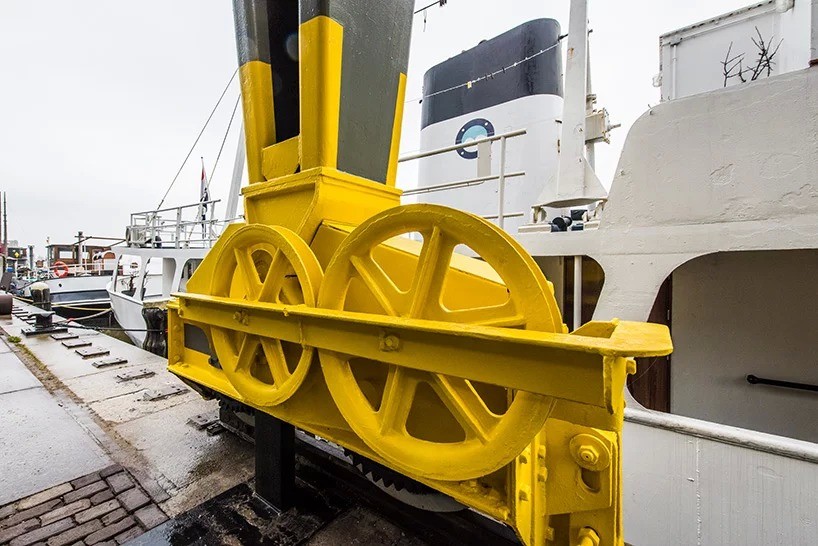 Het nieuwe appartement is ingebouwd in de draagconstructie van een scheepsbouwkraan. Het biedt een geweldig uitzicht op de Amsterdamse haven. Kraan Figee Kraan 2868, dat nu zal worden gebruikt voor toeristische accommodatie, is al lang geleden in 1979 niet meer actief.