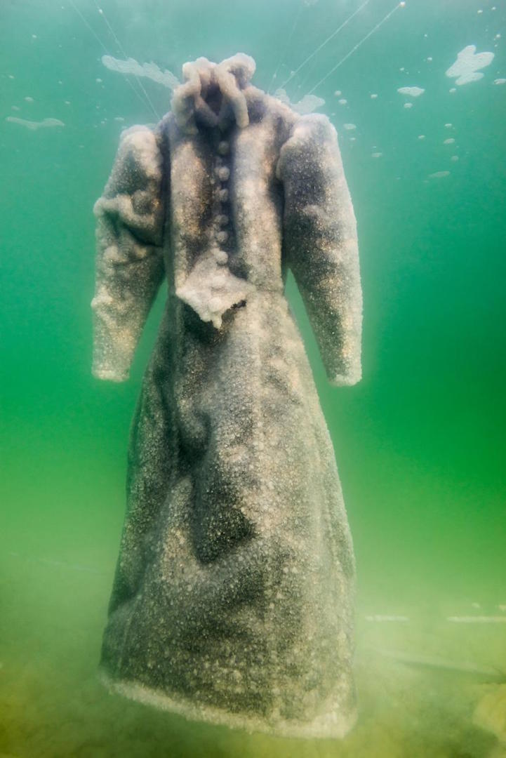 De Israëlische kunstenaar Sigalit Landau startte in 2014 een interessant project. Hij dompelde de jurk van een zwarte vrouw onder in de Dode Zee, en na twee jaar in zout water - de Dode Zee, die tussen Israël en Jordanië ligt, is het op een na zoutste meer ter wereld na het Afrikaanse Asalmeer - trok hij het onlangs naar de oppervlakte. Het resultaat? Een magische jurk, alsof het uit een sprookje komt, maar niet uit het water.