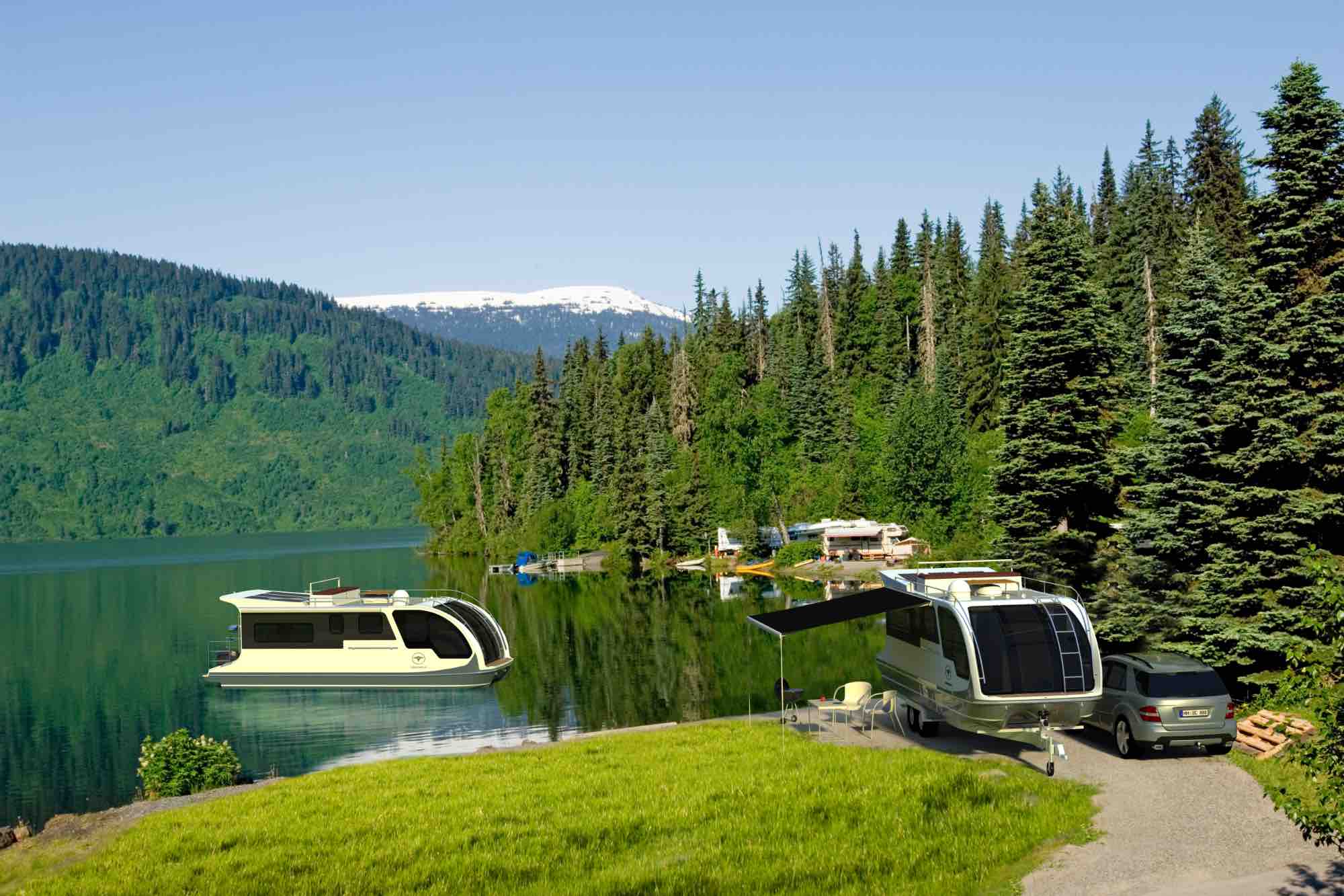 Het is al bekend dat de landen ten noorden van Slovenië van kamperen houden. Het is dan ook niet verwonderlijk dat de Duitsers nog een stap verder gingen. Ze bliezen een oud idee nieuw leven in en ontwierpen de Departure One caravan, die ook als 'huis' aan het water gebruikt kan worden.