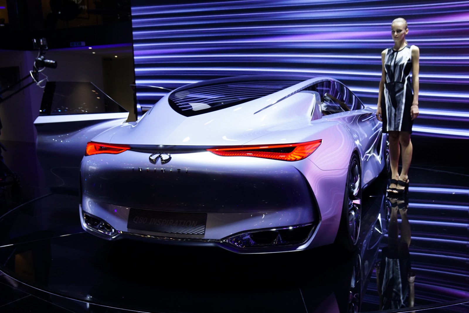Nissanova prestižna znamka vozil – Infiniti pa je na salonu razkril svojo različico panamere, ali štirivratnega limuzinskega kupeja, met een naam Q80 inspiration. Študija v dolžino meri 5,06 metra in dobrih dva metra v višino, kljub za potnike udobni potniški kabini, pa v višino meri kupejevskih 1,34 metra. Posebnost pri zasnovi pomenijo “samomorilska” vrata v slogu opel merive ter odsotnost B stebrička, kar ob odprtju vrat pomeni resnično velik- odprt prostor.
