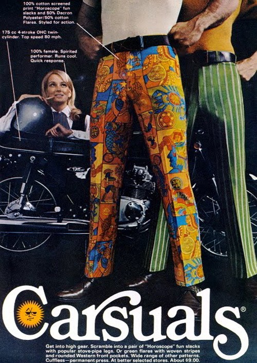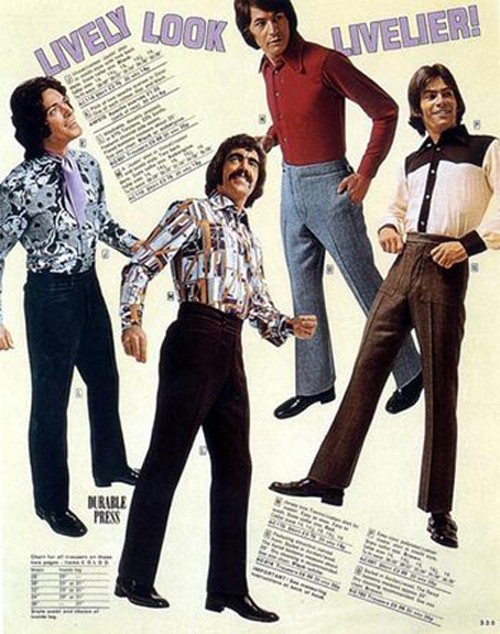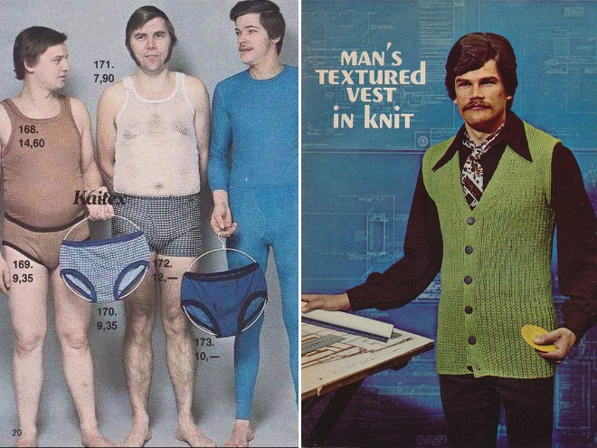 Kijk eens naar de bizar geklede mannelijke modellen in modeadvertenties uit de jaren 70.