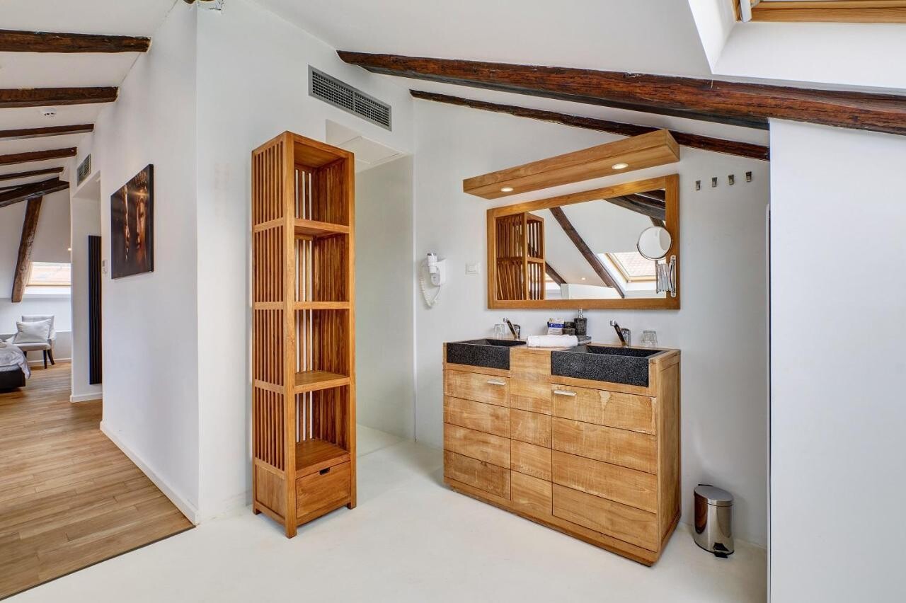 De luxe suites bevinden zich op de derde verdieping en de echte blikvanger zijn de stenen badkuipen, waar u 's avonds kunt ontspannen met een goed glas wijn. Stenen badkuipen worden in het midden van de kamers geplaatst, omdat ze echt iets bijzonders zijn. De suites zijn maar liefst 50 m2 groot en beschikken over een grote badkamer en een kingsize bed. Ook de Tuinsuite, bedoeld voor stellen, is iets bijzonders en bevindt zich op de begane grond van het pand en biedt een eigen entree met veel groen.