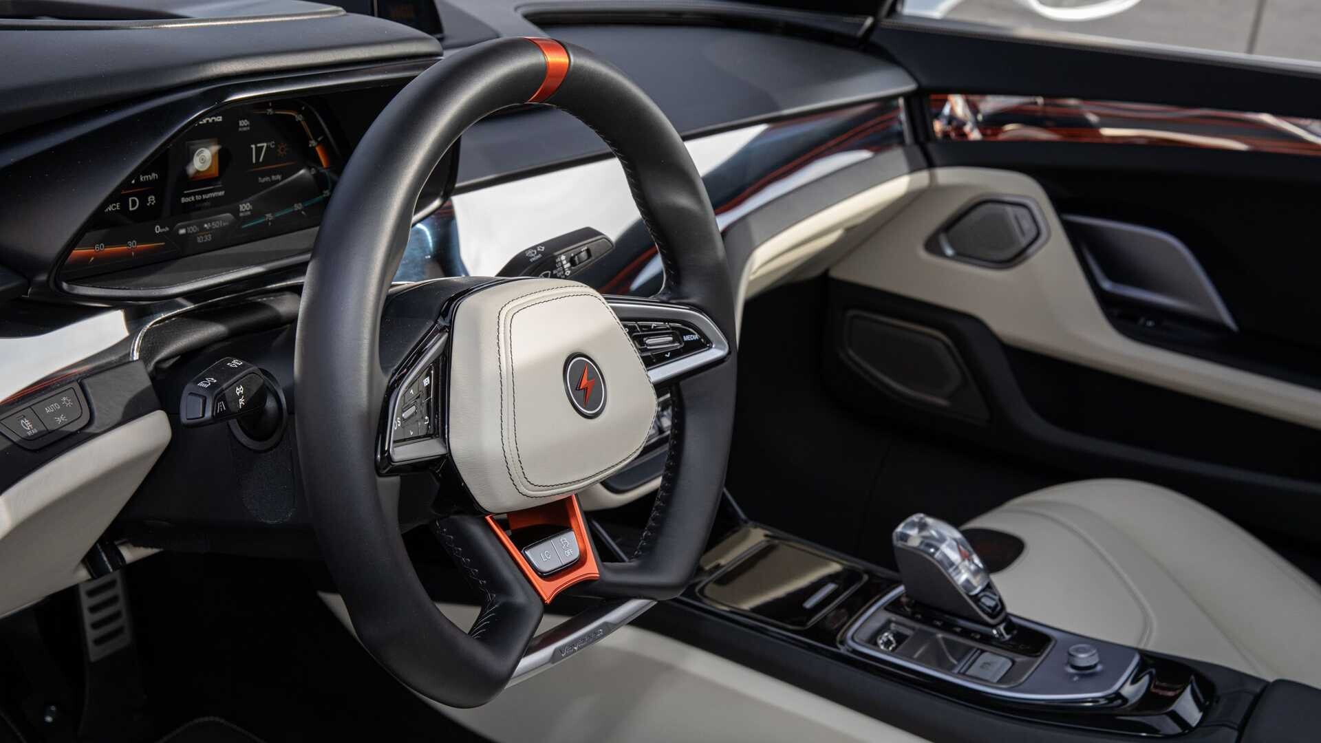 Auto's van Battista Pininfarina, die 21e-eeuwse technologie combineert met klassiek Italiaans design, is een verbluffende combinatie van aandrijflijnen Rimac Nevera en verbeterde mogelijkheden. Deze elektrische schoonheid heeft tijd 0-100 km/u (0-62 mph) in 1,8 seconden, topsnelheid 386 km/u (240 mph) en bereik 498 km (310 mijl). Met 1.417 kW (1.900 pk) overgebracht op alle vier de wielen, is de Battista Pininfarina een echte Italiaanse volbloed.