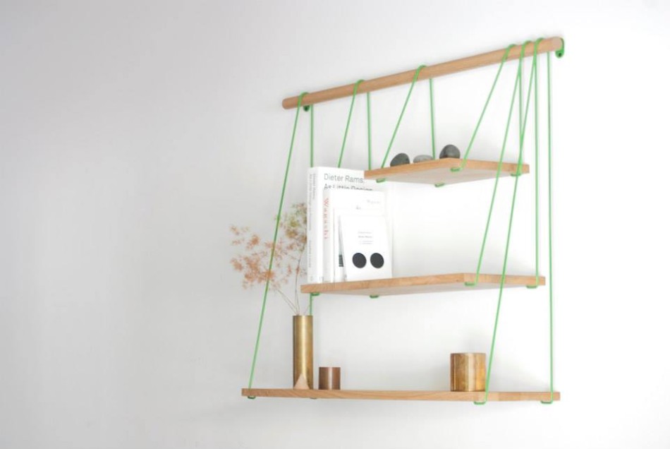 Voor viseče police is een team Outofstock dobila idejo po ogledu številnih visečih mostov, kakršen je ameriški gouden Poort. Proizvajalec je danski Bolia, ki je za police in horizontalno nosilno palico uporabil les, na katere so vpete železne palice v zeleni in beli barvi. Zaradi načina izdelave in ideje, lahko police poljubno premikate in jih postavite po lastnih željah.