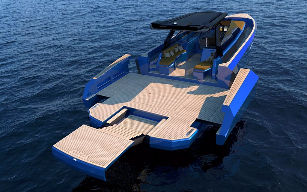 Waarschijnlijk heeft u nog nooit van een stretchjacht gehoord. Het Evo WA-jacht maakt precies dat mogelijk. Haar achtersteven schuift hydraulisch uit, waardoor een oppervlak ontstaat dat groot genoeg is om 12 personen te ontvangen.