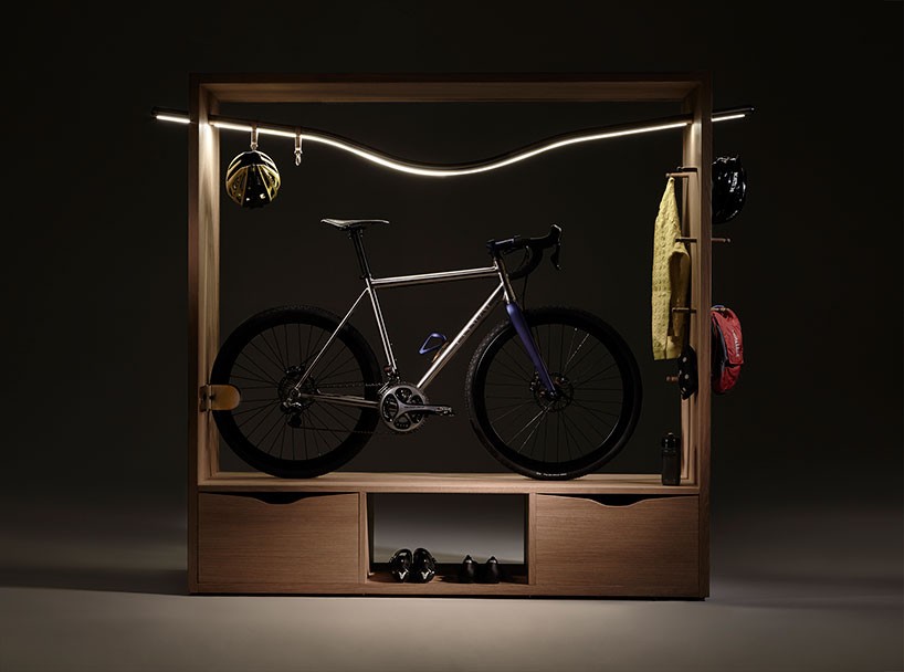 Als u er enkele beschikbaar heeft in uw appartement meer ruimte, dan is er een speciale fietsenkast voor u (Fietsenrek). De stuurvormige buis doet ook dienst als lamp en het stuur is subtiel en passend geklemd voor elke bandbreedte. Beide meubelen zijn gemaakt gemaakt van berkenmultiplex en ze kunnen worden bekleed met fineer uit verschillende houtsoorten (eiken, beuken,...). Dus als je op zoek bent naar een oplossing die past bij jouw fietslevensstijl, dan is de Vadolibero wellicht de ideale keuze.
