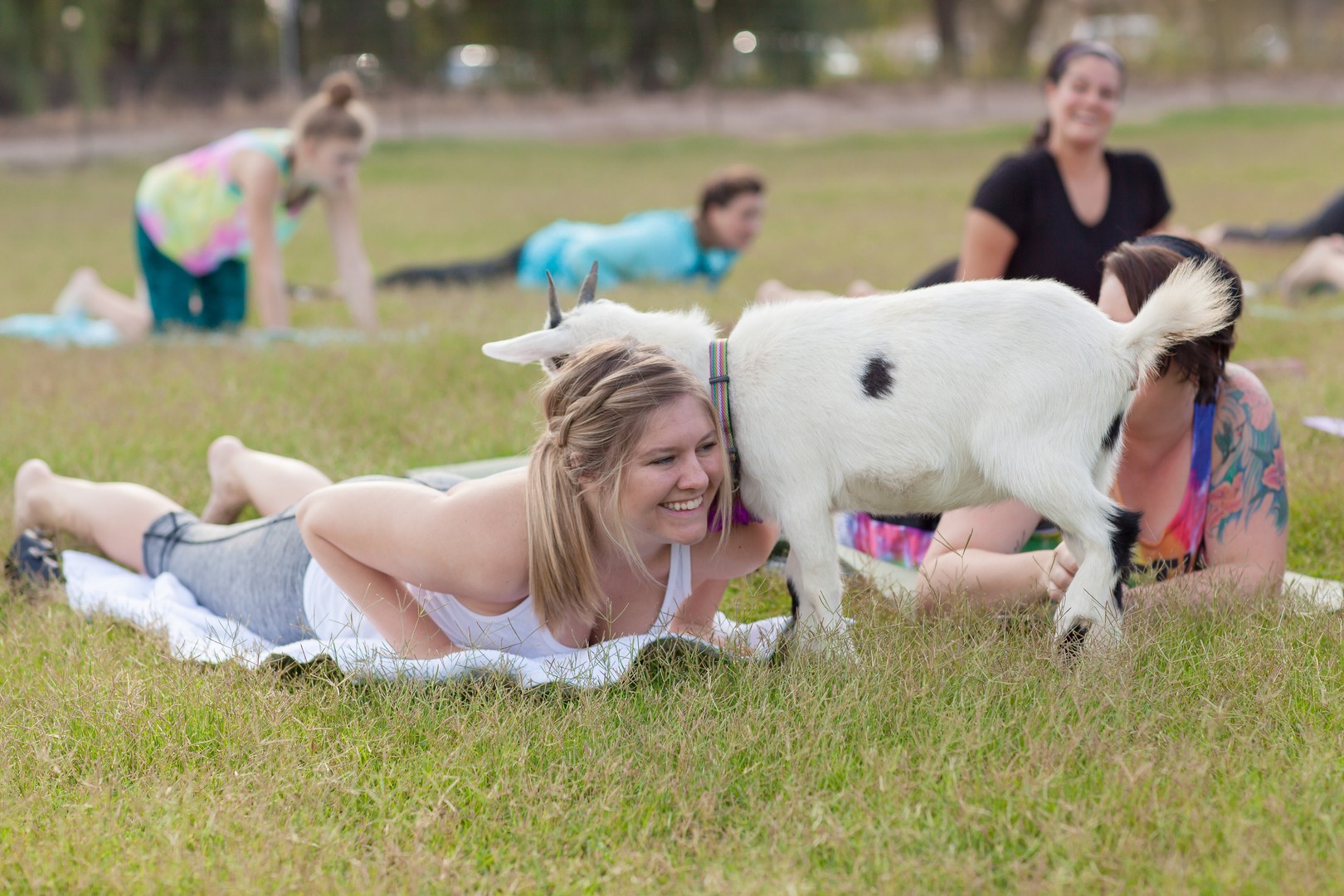 Geiten yoga is een kind Lainey Morsedie een boerderij met geiten kocht en ze als huisdieren begon te houden, en ze al snel ook ging gebruiken voor therapeutische doeleinden.