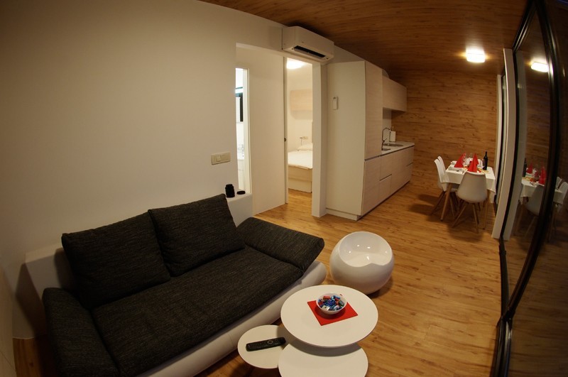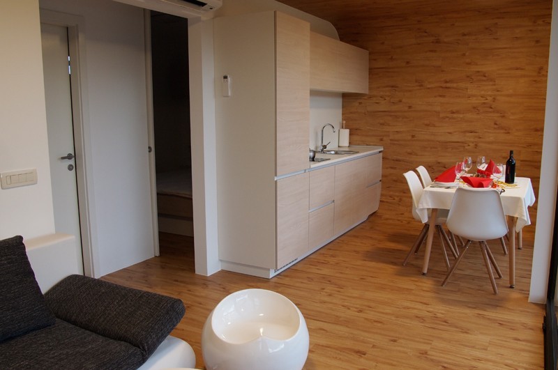 Vsaka hišica je namenjena štirim osebam in ima tudi dve dodatni ležišči. Skupni bivalni prostori merijo kar 40 m² in imajo pripadajočo teraso v izmeri 18,50 m². Na razpolago so dnevni prostor s kuhinjo in jedilnico, kopalnica, spalnica ter otroška soba. Pred vsako hiško je čudovita lesena terasa. Oblikovane so sodobno z vrhunskimi materiali in so zelo funkcionalne.
