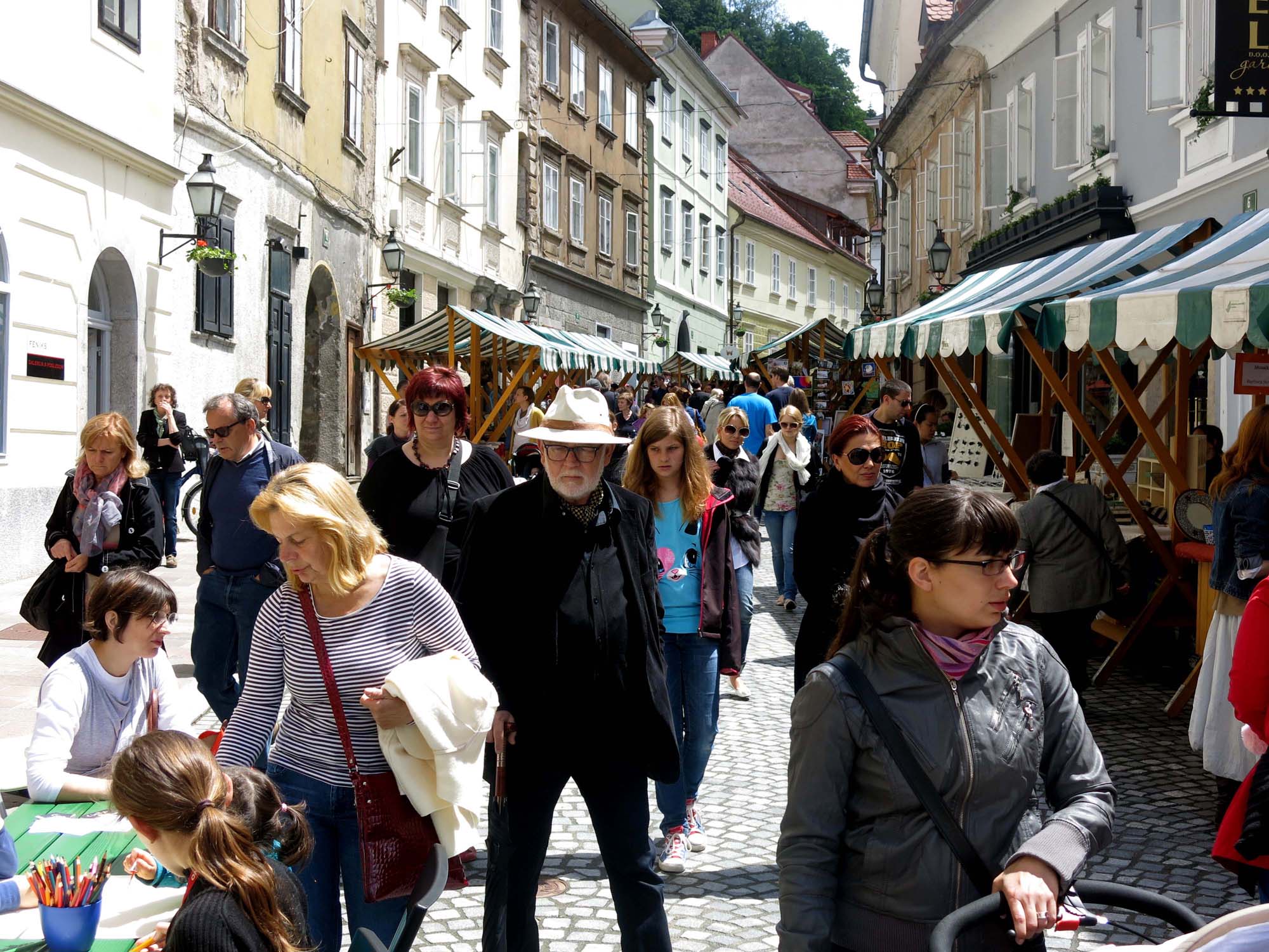 Het ARTish verkoop- en tentoonstellingskunstfestival verhuist weer naar buiten, onder de blauwe hemel, in het centrum van Ljubljana.