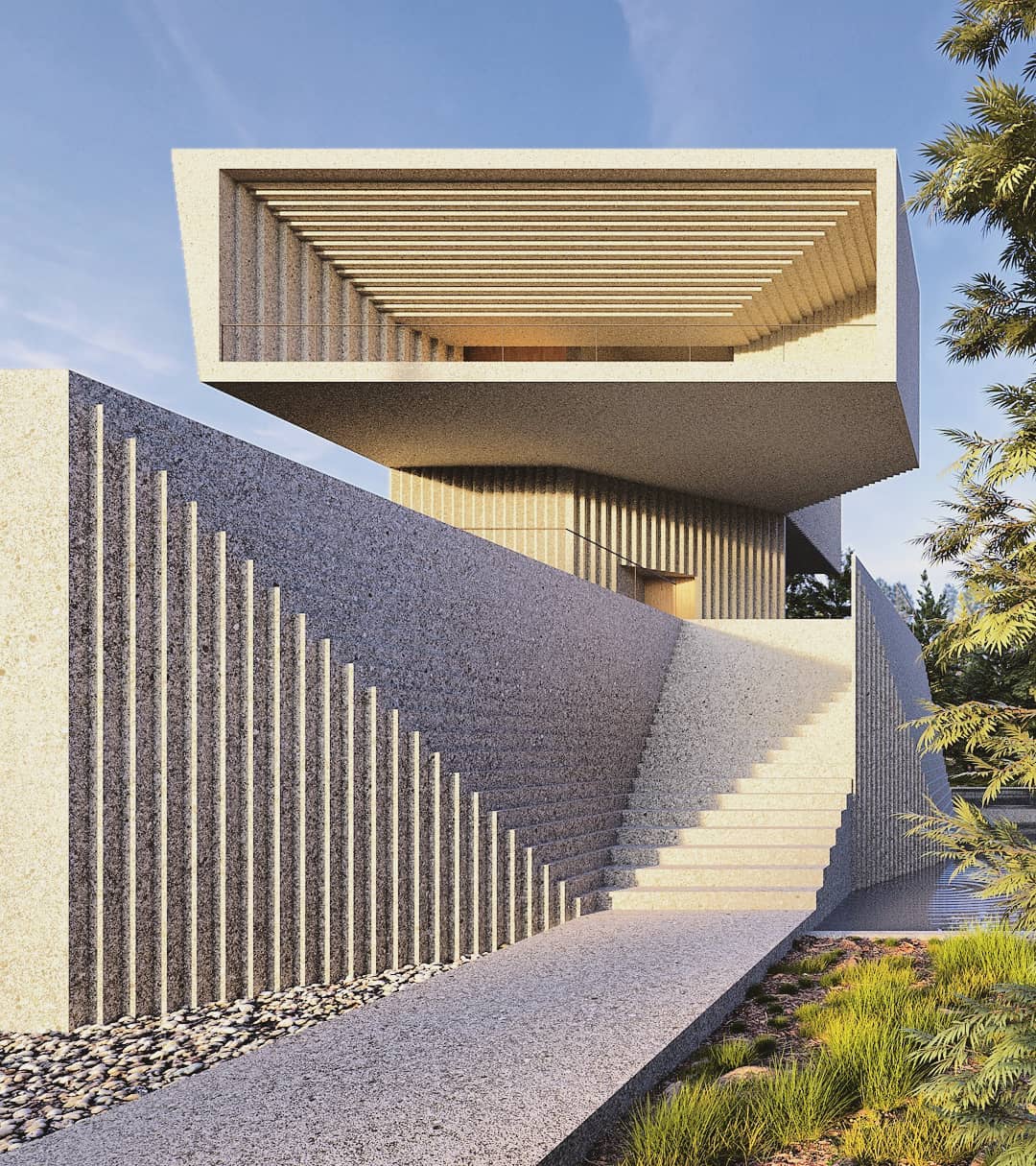 Kandalgaonkar ontwierp een modernere versie van het unieke huis – de woning zou niet letterlijk in de rotsen worden uitgehouwen, maar zou in plaats daarvan gebruik maken van betonplaten, die vertegenwoordigen leefruimte raamwerkDe architect benadrukt dat hij bij de bouw van zo'n huis gebruik moet maken van eenvoudige vormen van bouwcomponenten om visueel evenwicht.