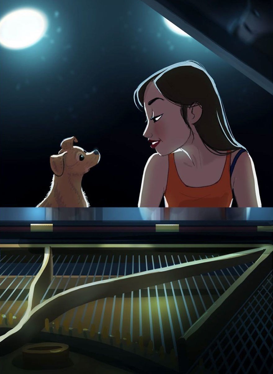 Ze begon illustraties op haar website te plaatsen die de liefde tussen huisdieren en hun baasjes weergeven. Leuke illustratie-ideeën krijgt van zijn hond Parker!