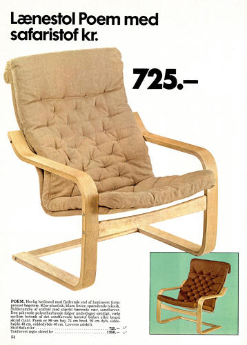 Največjo spremembo je naslanjač, ki je sprva slišal na ime Poem in ga je zasnoval Noboru Nakamura – ta se je Ikei pridružil leta 1973 in jo leta 1978 zapustil ter ustanovil lastno pohištveno podjetje –, doživel leta 1992, wanneer het kovinsko konstrukcijo zamenjal za leseno. Fotelj se je tudi nekoliko zožil, na račun tega pa je postal tudi precej cenejši. Istega leta so ga iz Poem preimenovali v Poäng.